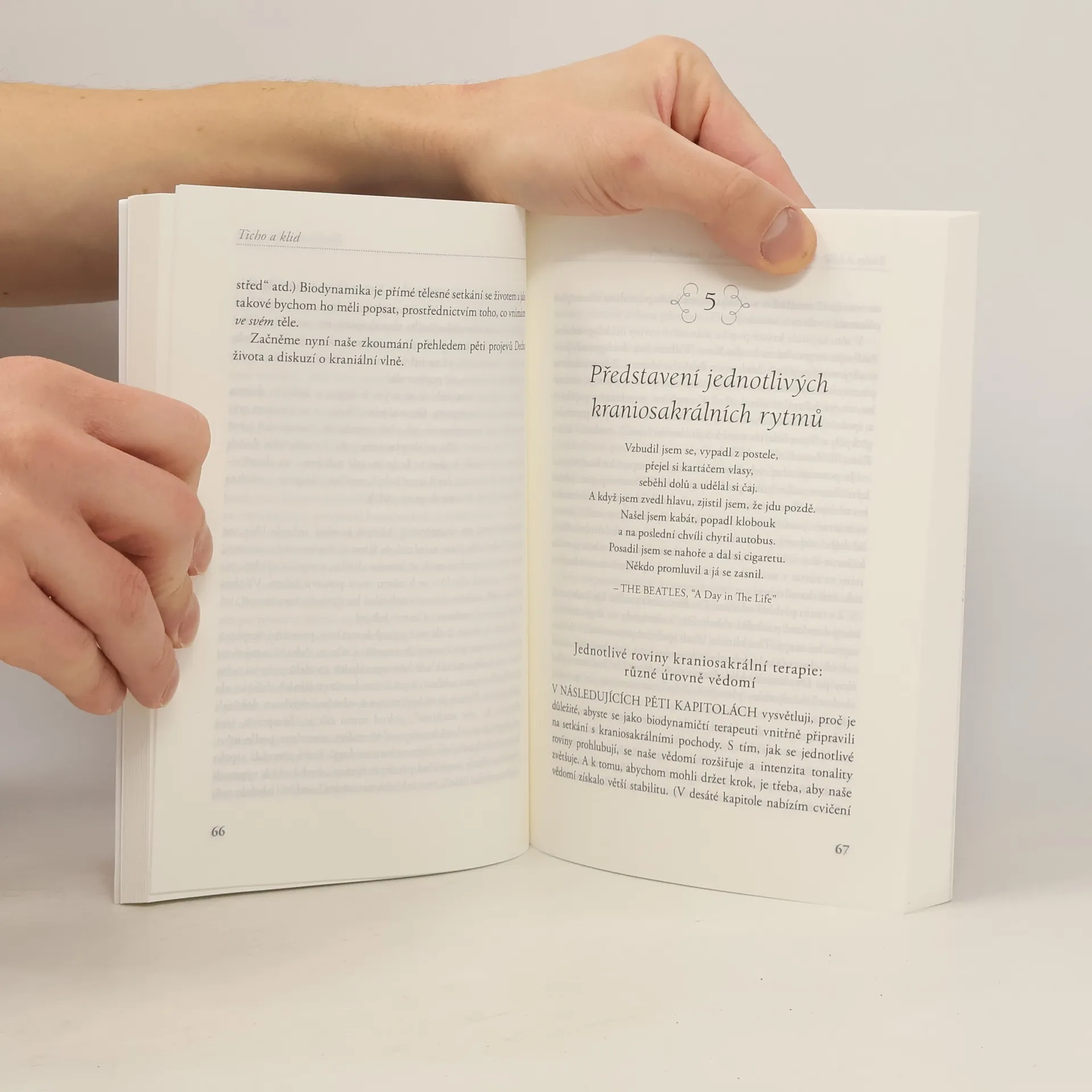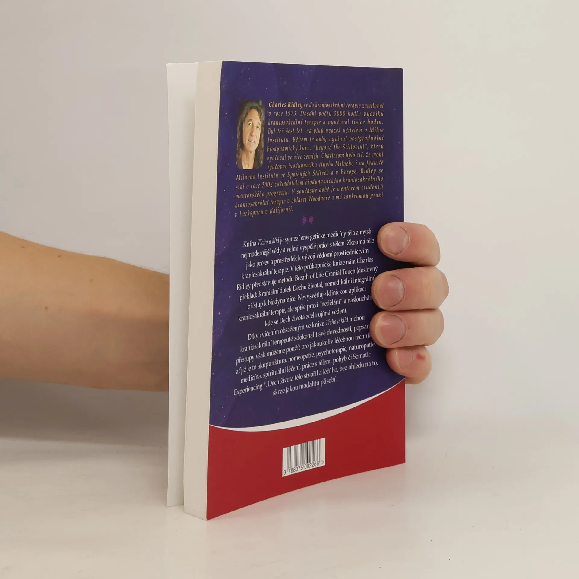 Kniha Ticho a klid je syntezí energetické medicíny těla a mysli, nejmodernější vědy a velmi vyspělé práce s tělem. Zkoumá tělo jako projev a prostředek k vývoji vědomí prostřednictvím kraniosakrální terapie. V této průkopnické knize nám Charles Ridley představuje metodu Breath of Life Cranial Touch (doslovný překlad: Kraniální dotek Dechu života), nemedikální integrální přístup k biodynamice. Nevysvětluje klinickou aplikaci kraniosakrální terapie, ale spíše praxi “nedělání” a naslouchání, kde se Dech života zcela ujímá vedení. Díky cvičením obsaženým ve knize Ticho a klid mohou kraniosakrální terapeuté zdokonalit své dovednosti, popsané přístupy však můžeme použít pro jakoukoliv léčebnou techniku, ať již je to akupunktura, homeopatie, psychoterapie, naturopatie, medicína, spirituální léčení, práce s tělem, pohyb či Somatic Experiencing ®. Dech Života tělo stvořil a léčí ho, bez ohledu na to, skrze jakou modalitu působí.