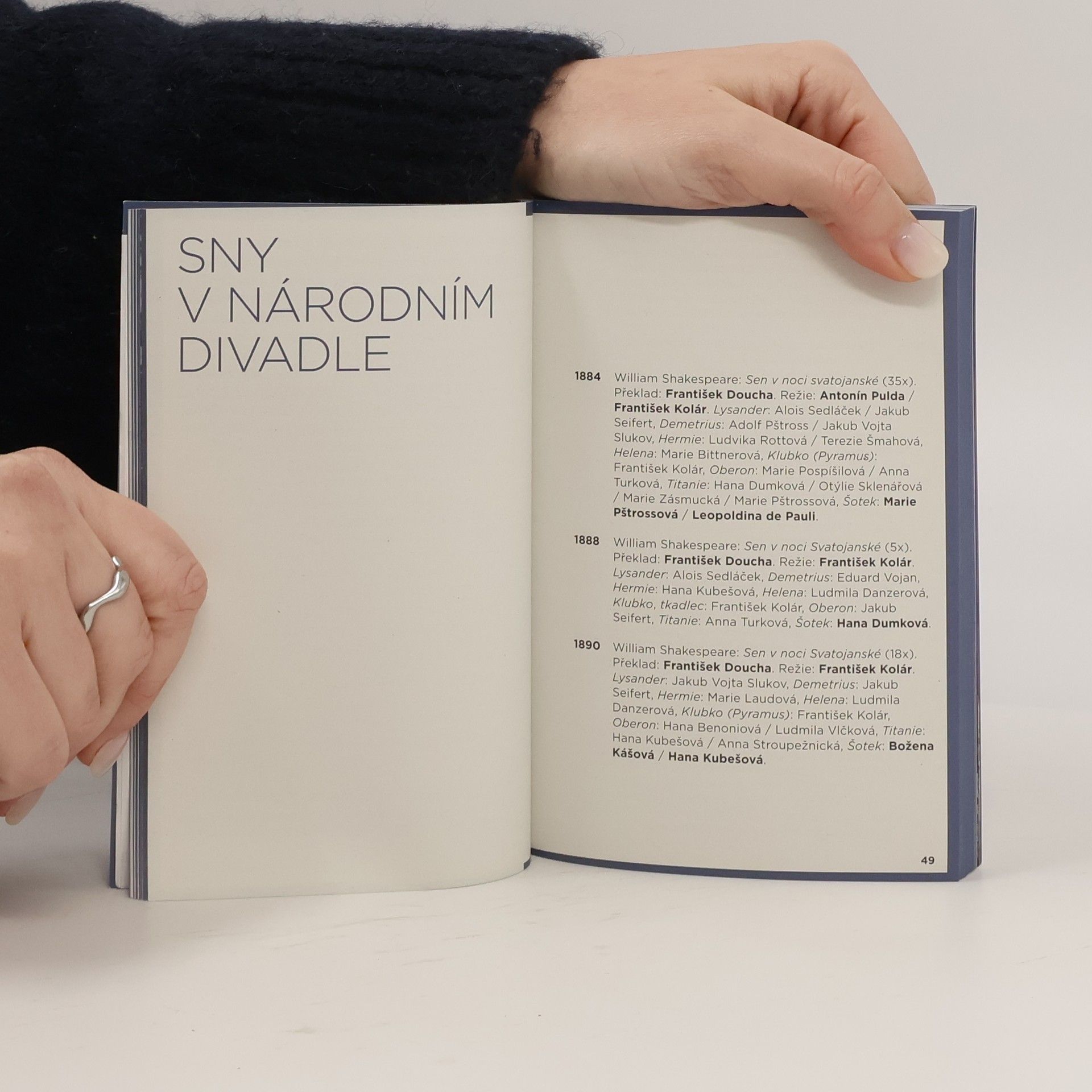 Programová brožura k inscenaci Sen čarovné noci. Shakespearova slavná komedie o tom, jak škodolibý skřítek Puk – původce všech dobrých vtipů a zlé legrace – kouzelnými kvítky zamotá hlavy i srdce milostnému čtyřlístku mladých Athéňanů – Hermii, Demetriovi, Lysandrovi a Heleně –, ale i královně víl Titanii. V programu najdete kompletní text hry Williama Shakespeara v překladu Jiřího Josky, barevné fotografie z inscenace, ale také dobové fotografie z archivu (třeba s Ladislavem Peškem jako Pukem z roku 1933), seznam všech Snů v historii Národního divadla včetně obsazení (věděli jste například, že první Sen se u nás hrál už v roce 1884?) a samozřejmě povídání a zajímavosti o hře, Shakespearovi, divadelních metaforách, blouznění i bláznění.