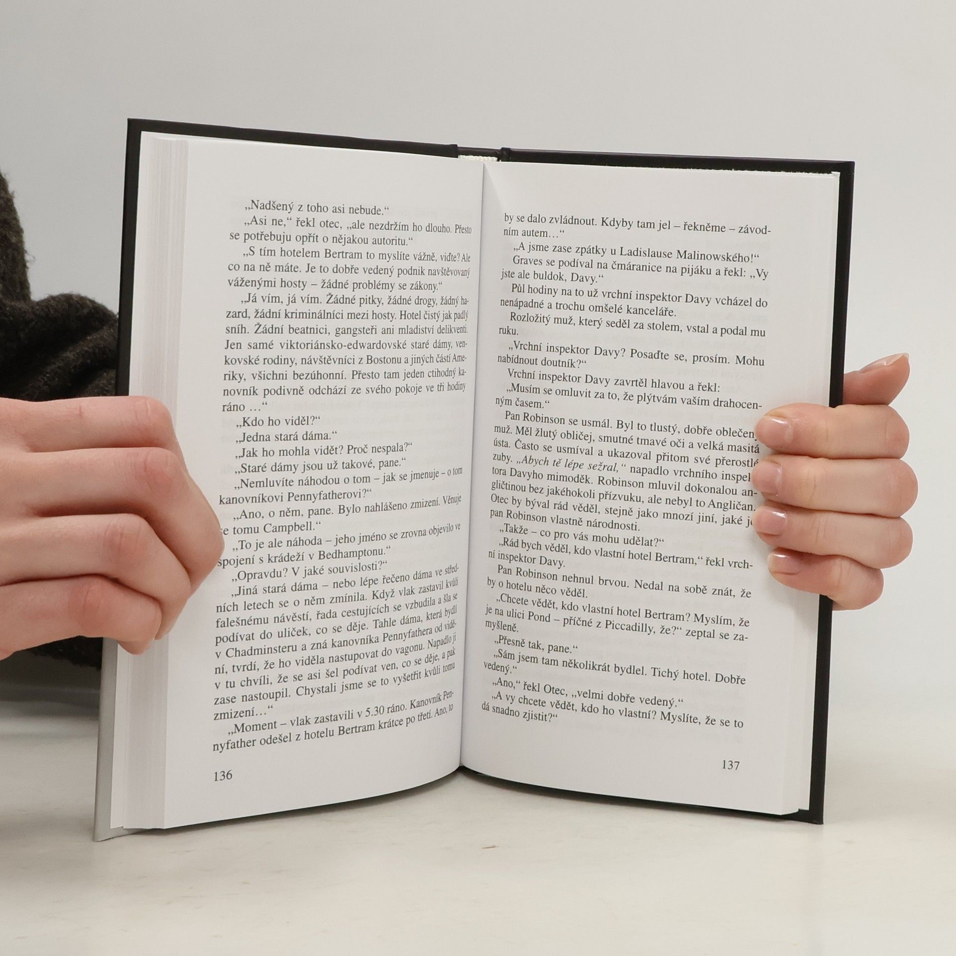 Londýnský hotel Bertram – neokázalý, ale luxusní dočasný i dlouhodobější příbytek příslušníků a příslušnic vyšších společenských vrstev – je místem, jehož atmosféru se rozhodne po letech znovu vychutnat i slečna Marplová, doufajíc, že čas neubral nic na jeho noblese, eleganci a kvalitě služeb či servírovaných snídaní. Záhy však zjistí, že i sem vtrhla moderní doba, Američané, televize a hluk motorových vozidel, nebezpečně se prohánějících londýnskými ulicemi. A nejen to – tak bystré a všímavé pozorovatelce nemůže uniknout neviditelná, pod povrchem skrytá, houstnoucí atmosféra zločinu, která posléze vyvře v podobě záhadného úmrtí hotelového portýra. Na scéně se vbrzku objeví inspektor Davy, vyšetřující zároveň několik spolu zdánlivě nesouvisejících případů, v nichž figurují i někteří místní hosté – mimo jiné roztržitý a zapomnětlivý kněz Pennyfather, který jednoho dne zmizí z hotelu a po čase je nalezen na venkově v příkopu u silnice s otřesem mozku a nesouvislými vzpomínkami...