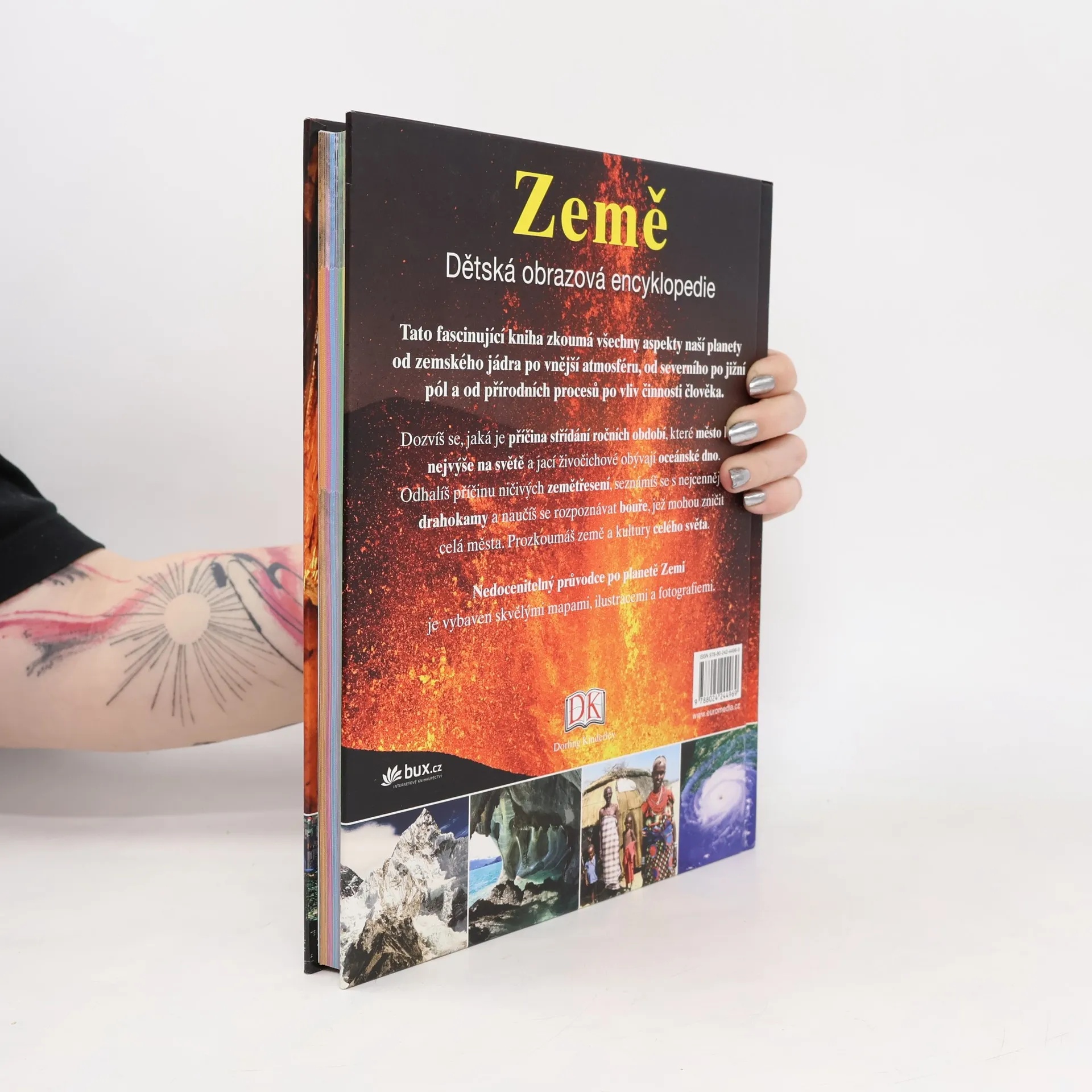Další z řady dětských obrazových encyklopedií se věnuje fascinujícímu tématu – planetě Zemi. Kniha zkoumá všechny aspekty naší planety od zemského jádra po vnější atmosféru, od severního po jižní pól a od přírodních procesů po vliv činnosti člověka. Odpovídá na všechny otázky, jaké mohou děti napadnout – jaká je příčina střídání ročních období, které město leží nejvýše na světě, kdo žije na oceánském dně nebo proč vznikají ničivá zemětřesení . Tento nedocenitelný průvodce po planetě Zemi je vybaven nejlepšími mapami, ilustracemi a fotografiemi.
