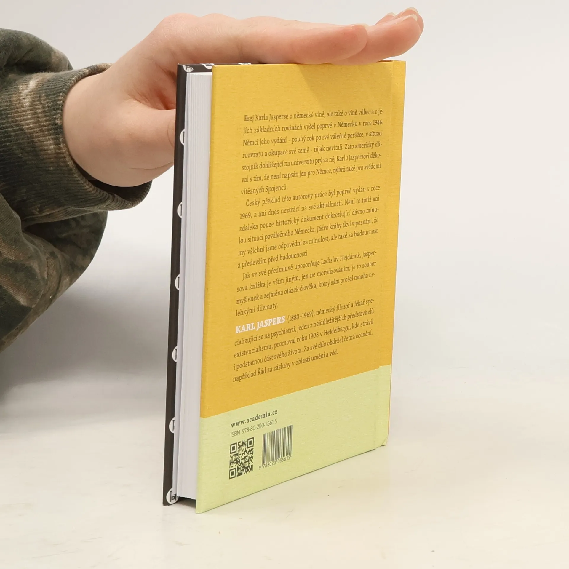 Esej Karla Jasperse o německé vině, ale také o vině vůbec a o jejích základních rovinách vyšel poprvé v Německu v roce 1946. Němci jeho vydání – pouhý rok po své válečné porážce, v situaci rozvratu a okupace své země – nijak nevítali. Zato americký důstojník dohlížející na univerzitu prý za nej Karlu Jaspersovi děkoval s tím, že není napsán jen pro Němce, nýbrž také pro svědomí vítězných Spojenců. Český překlad této autorovy práce byl poprvé vydán v roce 1969, a ani dnes neztrácí na své aktuálnosti. Není to totiž ani zdaleka pouze historický dokument dokreslující dávno minulou situaci poválečného Německa. Jádro knihy tkví v poznání, že my všichni jsme odpovědni za minulost, ale také za budoucnost a především před budoucností. Jak ve své předmluvě upozorňuje Ladislav Hejdánek, Jaspersova knížka je vším jiným, jen ne moralizováním; je to soubor myšlenek a zejména otázek člověka, který sám prošel mnoha nelehkými dilematy.