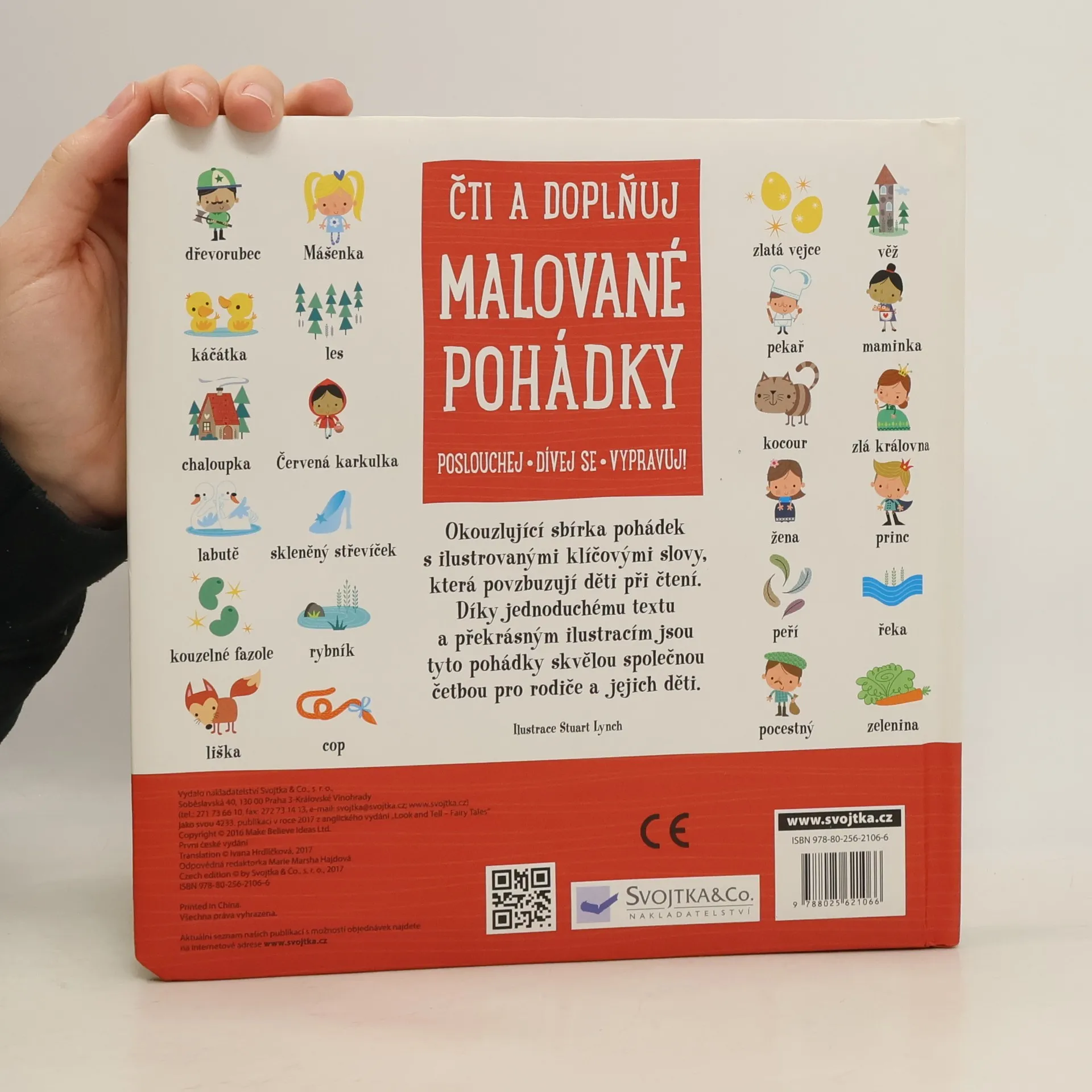 Osm pohádek v krásném ilustrovaném zpracování, které kombinuje text a obrázky a povzbuzuje tím děti ke čtení. Pohádky o Popelce, Sněhurce, Ošklivém káčátku nebo Mášence a třech medvědech provází snad každé dítě. Znají je skoro všichni. Připomeňte si osm populárních i méně známých pohádek v této okouzlující sbírce s ilustrovanými klíčovými slovy, která povzbuzují děti při čtení. Díky jednoduchému textu a překrásným ilustracím jsou tyto pohádky skvělou společnou četbou pro dospělé a jejich děti. Zpříjemněte si chvíle nejen před spaním.
