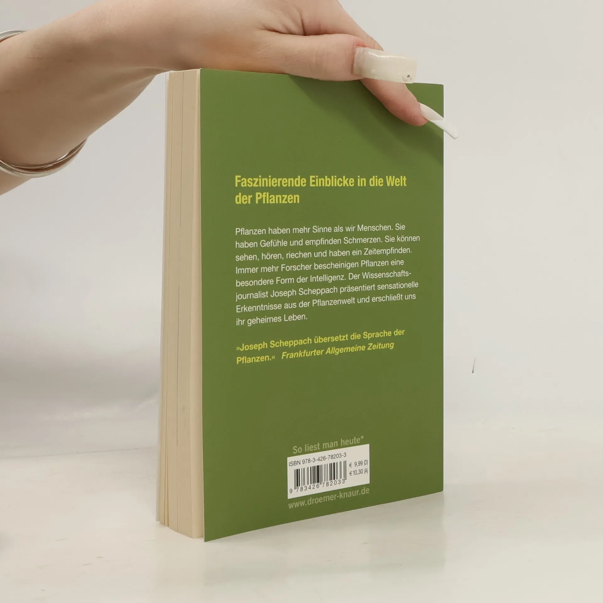 Pflanzen haben mehr Sinne als wir Menschen. Sie haben Gefühle und empfinden Schmerzen. Sie können sehen, hören, riechen und haben ein Zeitempfinden. Immer mehr Forscher bescheinigen Pflanzen eine besondere Form der Intelligenz. Der Wissenschaftsjournalist Joseph Scheppach präsentiert sensationelle Erkenntnisse aus der Pflanzenwelt und erschließt uns ihr geheimes Leben.