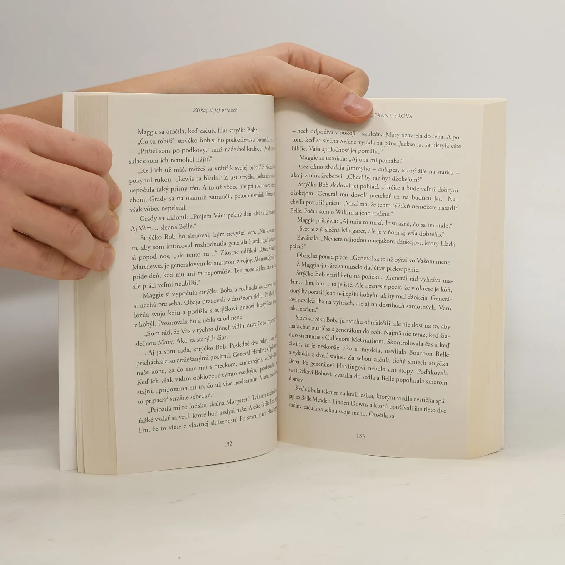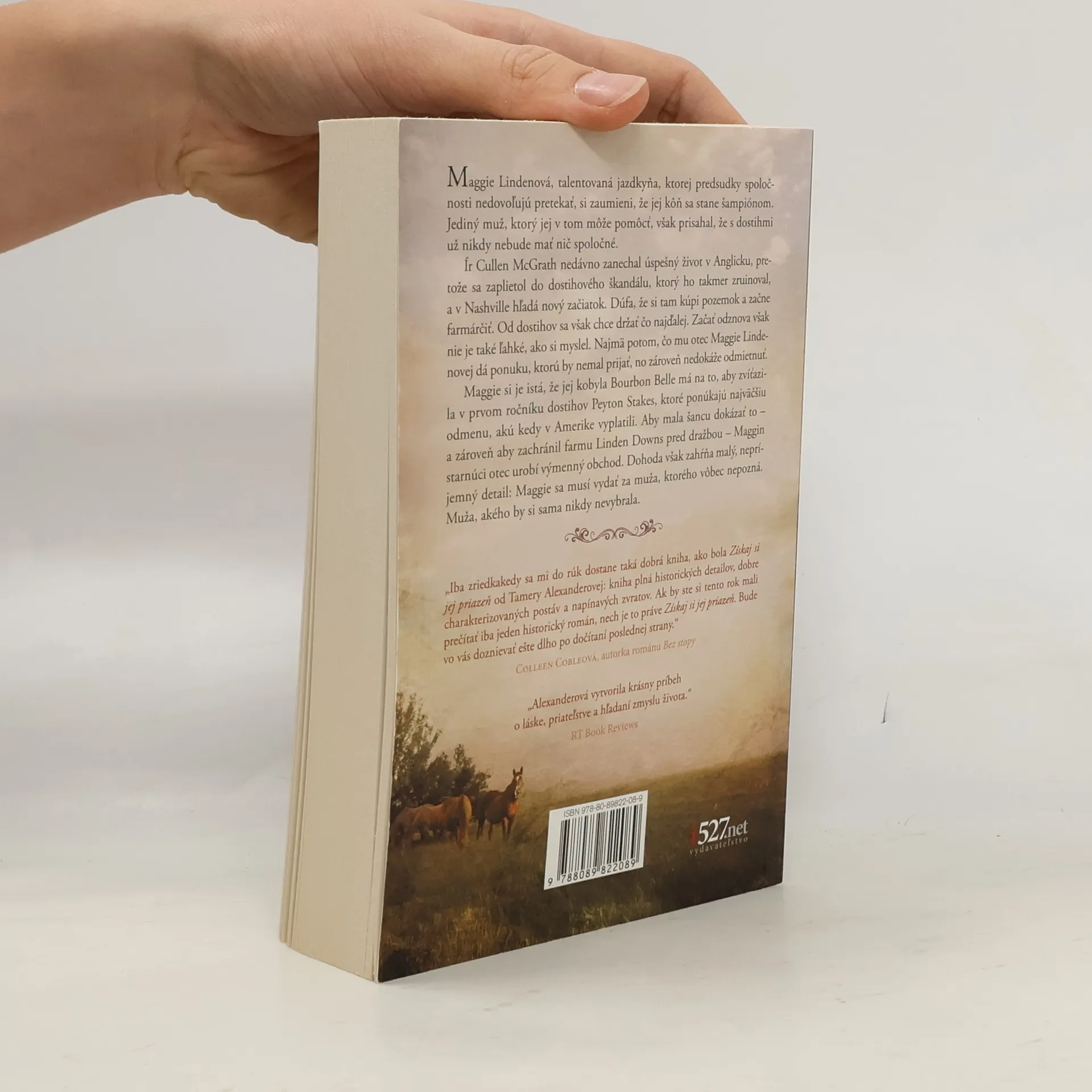 Maggie Lindenová, talentovaná jazdkyňa, ktorej predsudky spoločnosti nedovoľujú pretekať, si zaumieni, že jej kôň sa stane šampiónom. Jediný muž, ktorý jej v tom môže pomôcť, však prisahal, že s dostihmi už nikdy nebude mať nič spoločné. Ír Cullen McGrath nedávno zanechal úspešný život v Anglicku, pretože sa zaplietol do dostihového škandálu, ktorý ho takmer zruinoval, a v Nashville hľadá nový začiatok. Dúfa, že si tam kúpi pozemok a začne farmárčiť. Od dostihov sa však chce držať čo najďalej. Začať odznova však nie je také ľahké, ako si myslel. Najmä potom, čo mu otec Maggie Lindenovej dá ponuku, ktorú by nemal prijať, no zároveň nedokáže odmietnuť. Maggie si je istá, že jej kobyla Bourbon Belle má na to, aby zvíťazila v prvom ročníku dostihov Peyton Stakes, ktoré ponúkajú najväčšiu odmenu, akú kedy v Amerike vyplatili. Aby mala šancu dokázať to – a zároveň aby zachránil farmu Linden Downs pred dražbou – Maggin starnúci otec urobí výmenný obchod. Dohoda však zahŕňa malý, nepríjemný detail: Maggie sa musí vydať za muža, ktorého vôbec nepozná. Muža, akého by si sama nikdy nevybrala.