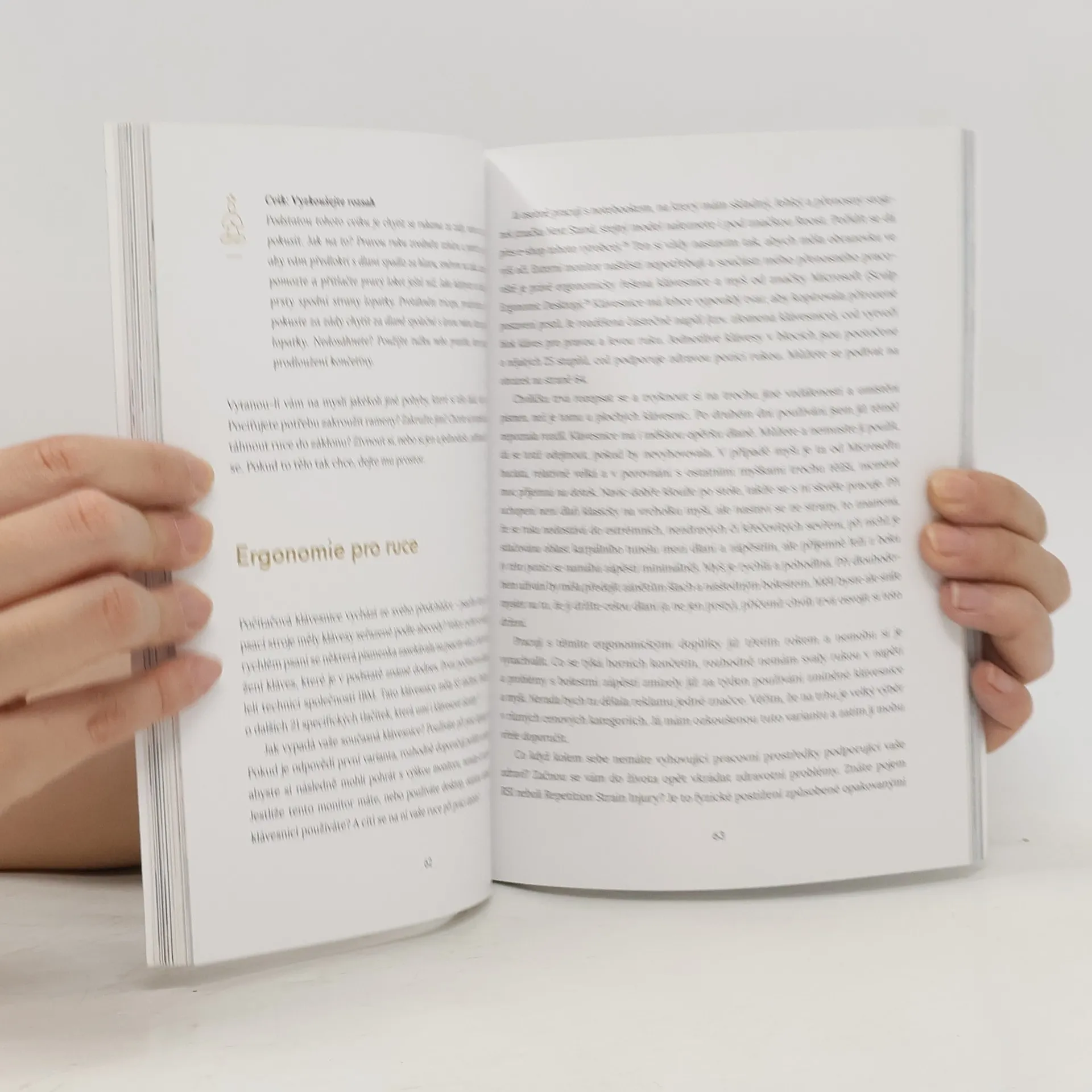 Kniha je určená všem lidem, kteří mají sedavé zaměstnání a z toho plynoucí bolesti těla, nebo třeba problémy s pracovní produktivitou či stresem a napětím. Díky této publikaci se naučíte uvolnit se přímo v práci a zařadit zdravý pohyb do každodenního života. V knize naleznete více jak 70 rad a cviků v pěti ucelených kapitolách zaměřených na jednotlivé části těla od hlavy až k patě. Budete mít možnost zjistit, že protáhnout se zdravě v práci není vůbec žádná věda a cítit se dobře ve vlastním těle je vlastně dost příjemné. Budete mít taktéž šanci nahlédnout do zajímavých a inspirativních českých kanceláří, kde se autorské fotografie pořizovaly.