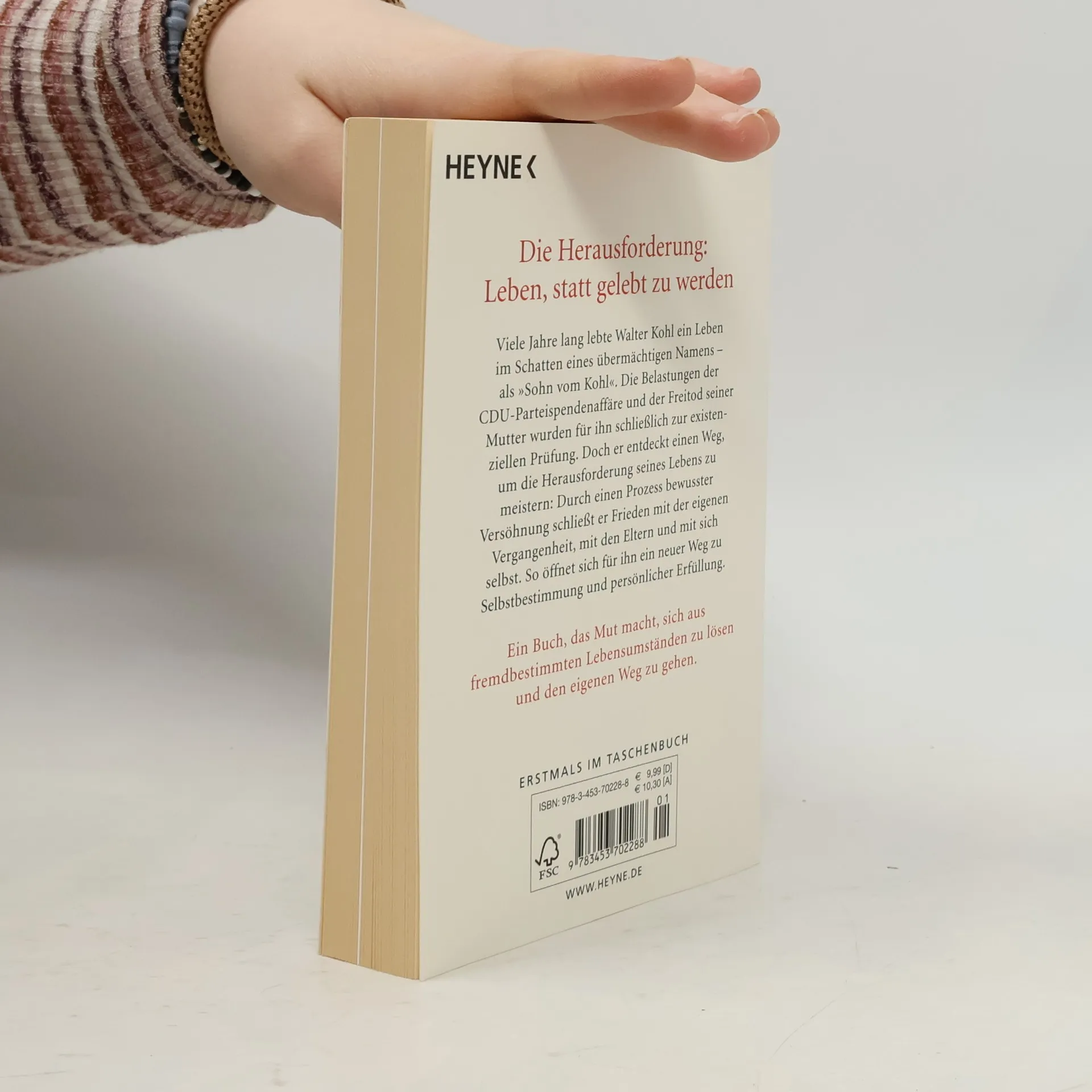 Der Nr.-1-SPIEGEL-Bestseller erstmals im Taschenbuch Viele Jahre lang lebte Walter Kohl ein Leben im Schatten eines übermächtigen Namens – als »Sohn vom Kohl«. Die Belastungen der CDU-Parteispendenaffäre und der Freitod seiner Mutter wurden für ihn zur existenziellen Prüfung. In seinem berührenden Buch schildert er, wie er die tiefste Krise seines Lebens meisterte: Durch einen Prozess bewusster Versöhnung schließt er Frieden mit der eigenen Vergangenheit, mit den Eltern und mit sich selbst. Ausstattung: 8 Seiten Bildteil