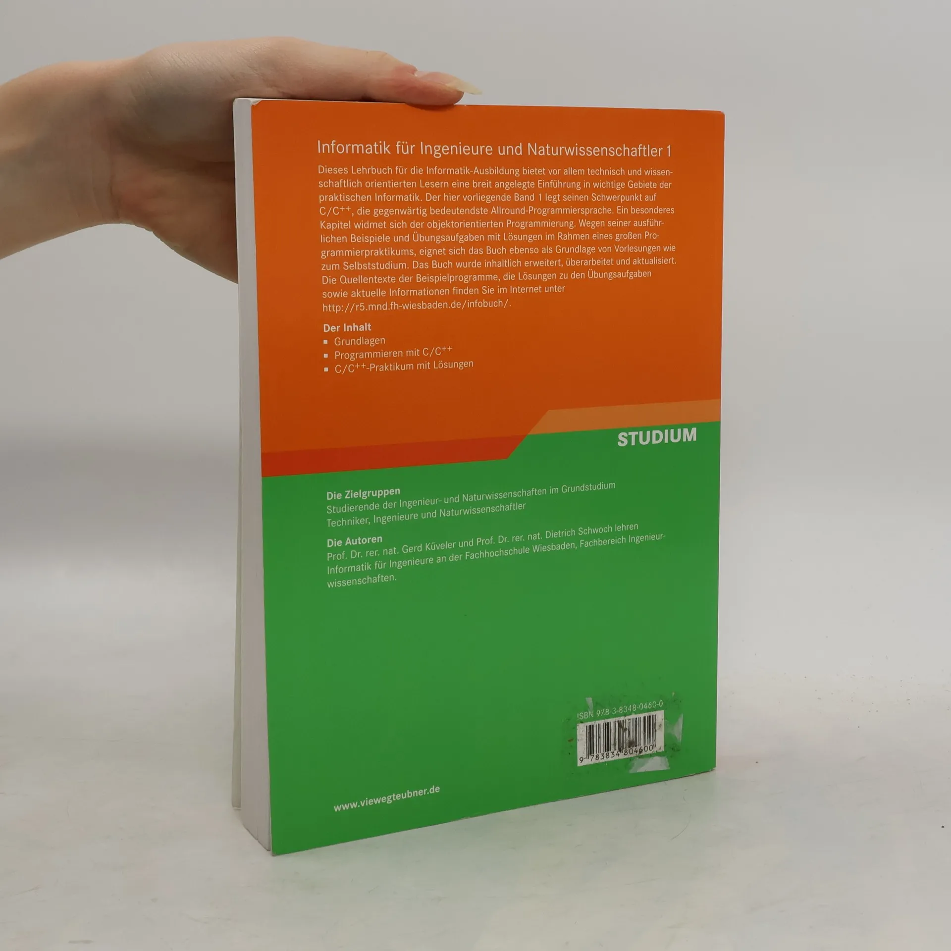 Dieses Lehrbuch für die Informatik-Ausbildung bietet vor allem technisch und wissenschaftlich orientierten Lesern eine breit angelegte Einführung in wichtige Gebiete der praktischen Informatik. Der Schwerpunkt dieses Bandes liegt auf C/C++, die gegenwärtig bedeutendste Allround-Programmiersprache. Ein besonderes Kapitel widmet sich der objektorientierten Programmierung. Wegen seiner ausführlichen Beispiele und Übungsaufgaben mit Lösungen im Rahmen eines großen Programmierpraktikums, eignet sich das Buch ebenso als Grundlage von Vorlesungen wie zum Selbststudium. Das Buch wurde inhaltlich erweitert, überarbeitet und aktualisiert. Die Quellentexte der Beispielprogramme, die Lösungen zu den Übungsaufgaben sowie aktuelle Informationen finden Sie im Internet unter