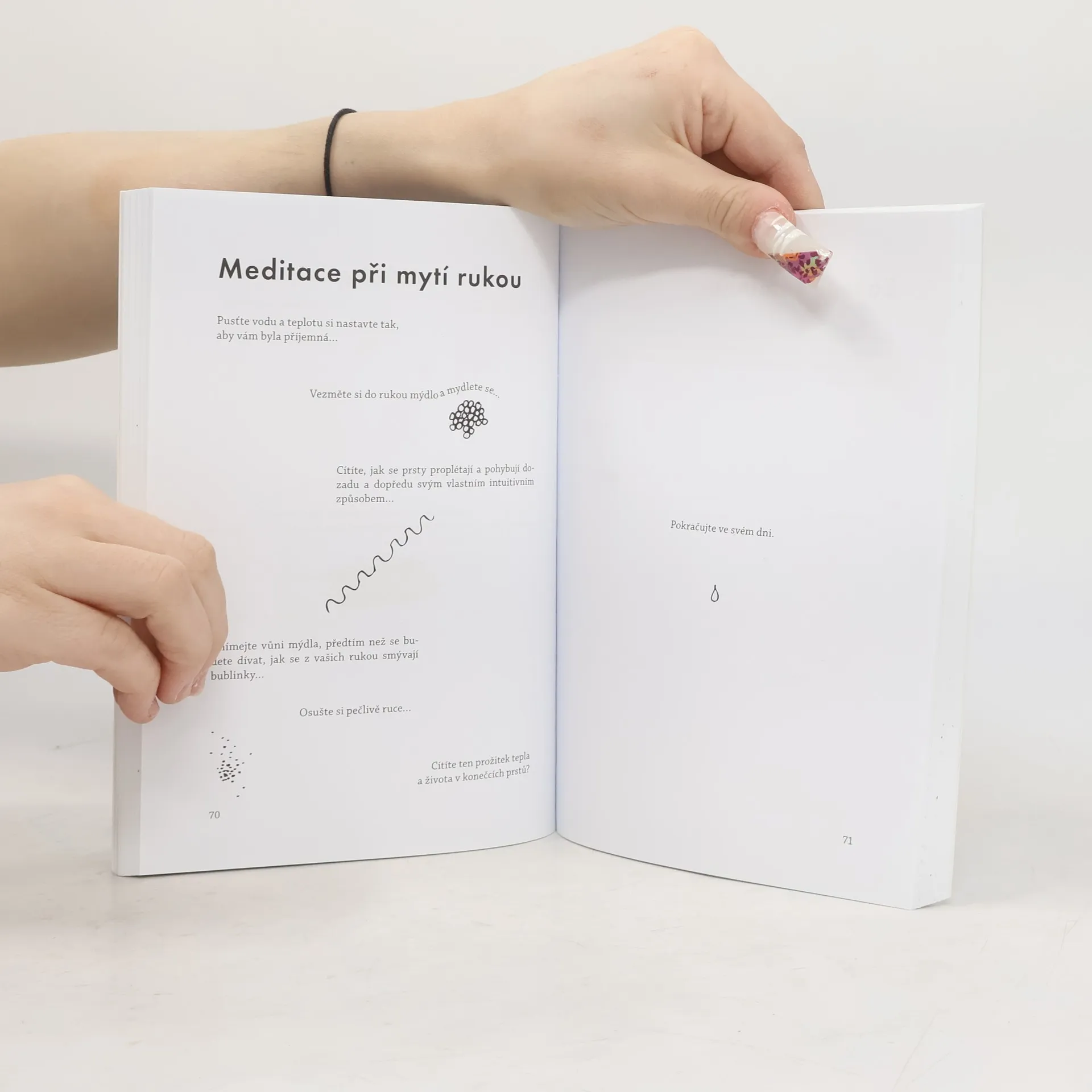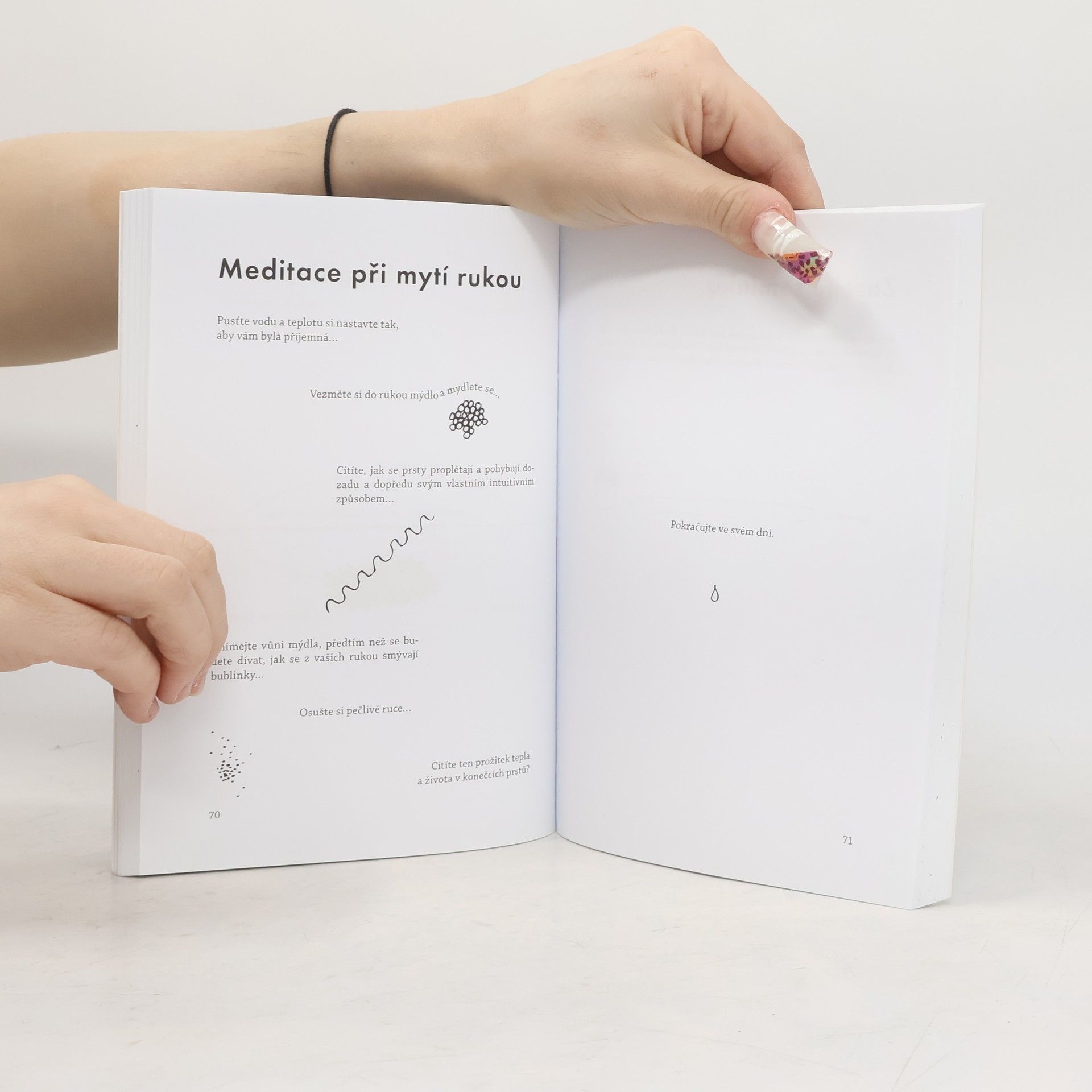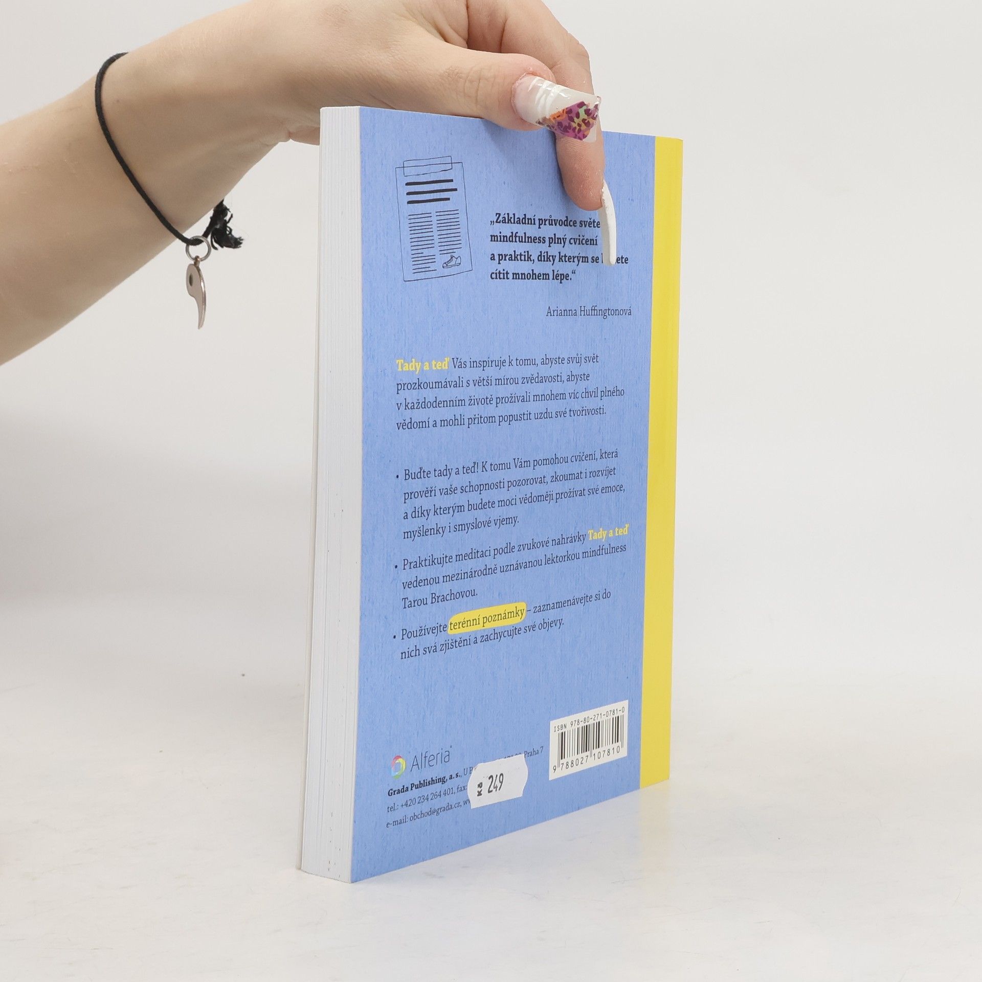 Kreativní deník a průvodce světem mindfulness. Mindfulness neboli všímavost je schopnost bytí v přítomném okamžiku, soustředění a v důsledku i lepšího porozumění vlastním pocitům. V knížce najdete přes 80 cvičení, soustředěných na pozorování/zkoumání, rozvoj osobnosti, koncentraci a rovoj smyslového vnímání. Můžete vyplňovat jednu stránku denně nebo si projít víc cvičení naráz, postupovat od začátku do konce nebo vyplňovat úkoly na přeskáčku. Je to knížka na hraní a přitom nejen na hraní. Tady a teď je ideální (dárek) proto ty, co o mindfulness ještě neslyšeli a chtěli by trochu potrénovat všímavost a soustředění, ale ocení ji i ti, co už s mindfulness zkušenosti mají. Forma interaktivního deníku doplňuje doposud existující příručky a potěší všechny, kdo si chtějí udělat trochu času pro sebe.