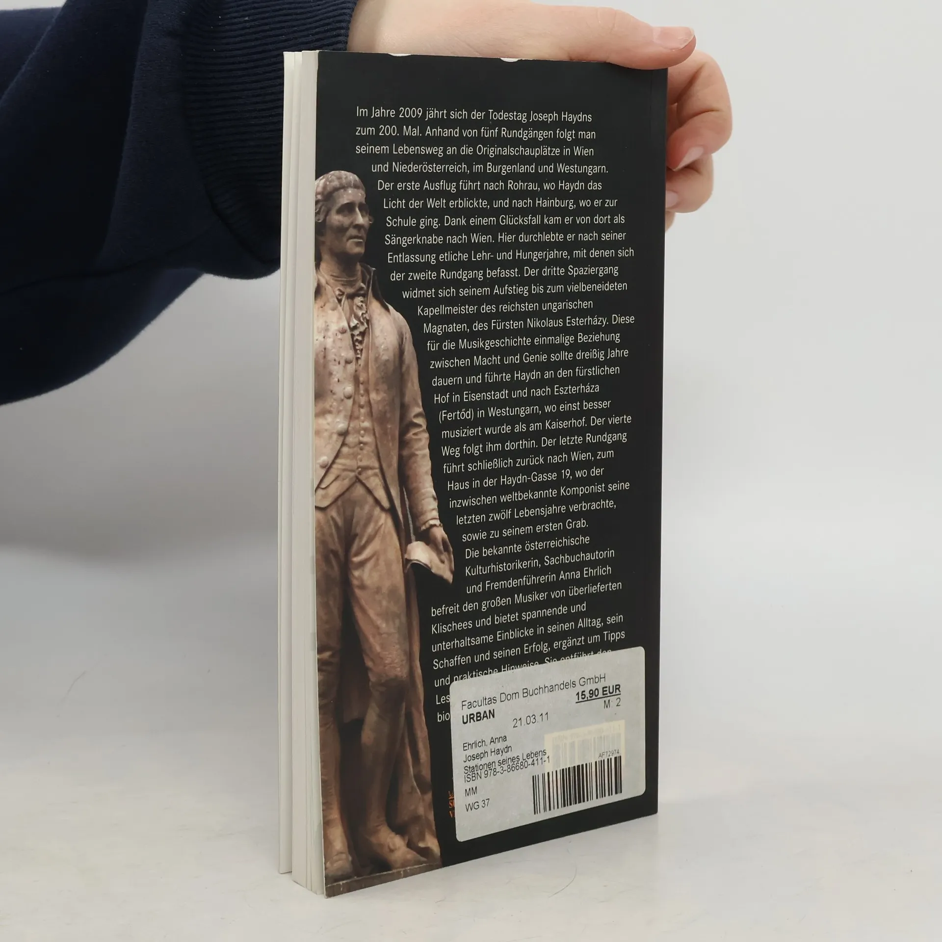 Im Jahr 2009 jährt sich der Todestag Joseph Haydns zum 200. Mal. Fünf Rundgänge folgen seinem Lebensweg an Originalschauplätze in Wien, Niederösterreich, Burgenland und Westungarn. Der erste Ausflug führt nach Rohrau, wo Haydn geboren wurde, und nach Hainburg, wo er zur Schule ging. Ein Glücksfall brachte ihn als Sängerknaben nach Wien, wo er nach seiner Entlassung mehrere Lehr- und Hungerjahre erlebte, die im zweiten Rundgang thematisiert werden. Der dritte Spaziergang widmet sich seinem Aufstieg zum Kapellmeister des Fürsten Nikolaus Esterházy, einer einzigartigen Beziehung zwischen Macht und Genie, die dreißig Jahre andauerte und Haydn an den fürstlichen Hof in Eisenstadt und nach Eszterháza (Ferto˝d) führte, wo die Musik blühte. Der vierte Weg folgt ihm dorthin. Der letzte Rundgang führt zurück nach Wien, zum Haus in der Haydn-Gasse 19, wo der berühmte Komponist seine letzten zwölf Lebensjahre verbrachte, sowie zu seinem ersten Grab. Die Kulturhistorikerin Anna Ehrlich befreit den Musiker von Klischees und bietet spannende Einblicke in seinen Alltag und sein Schaffen, ergänzt mit praktischen Tipps. Sie entführt den Leser auf eine faszinierende historische und biografische Entdeckungsreise.