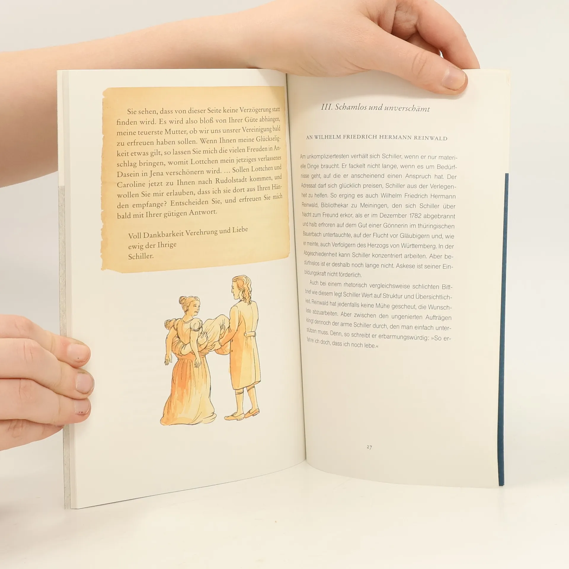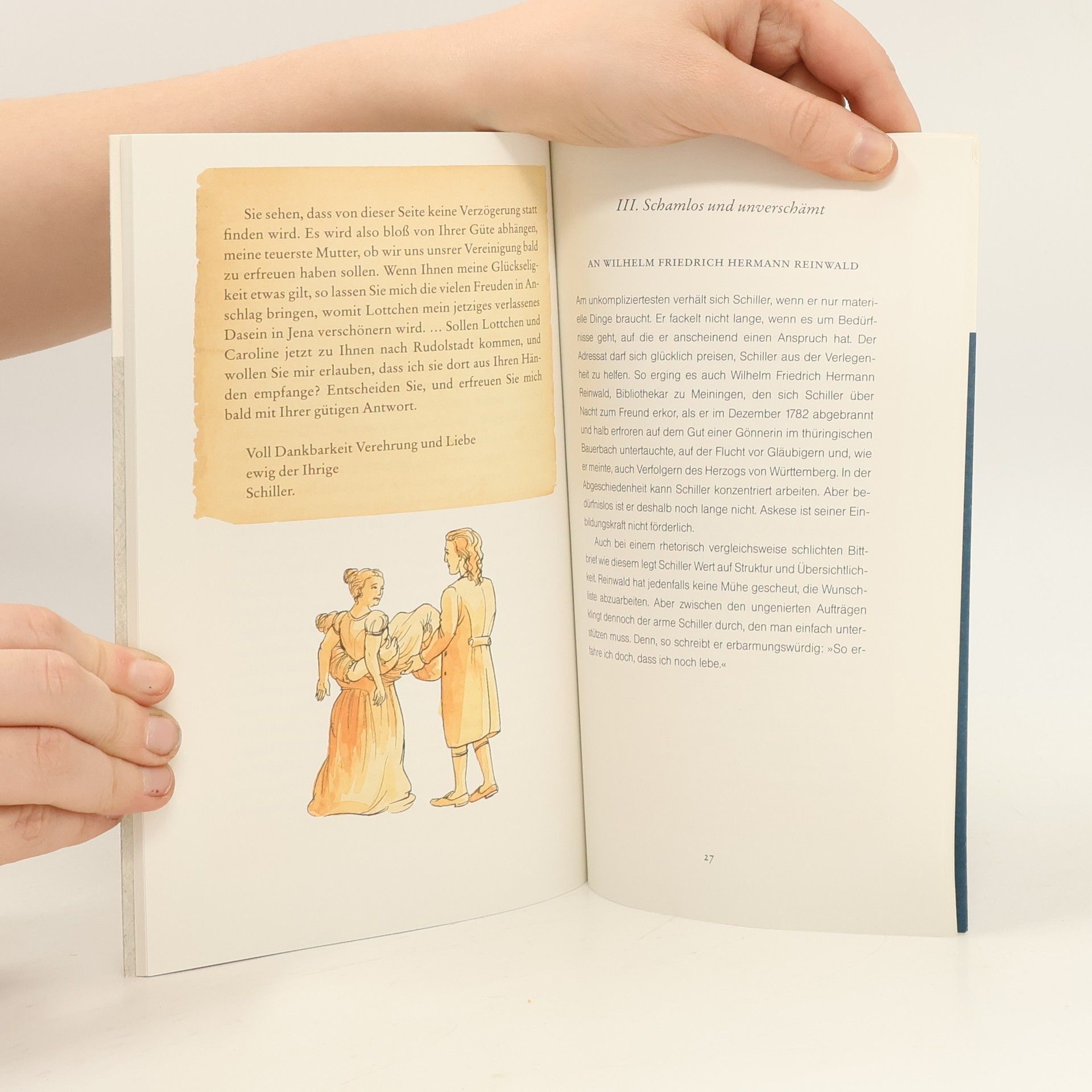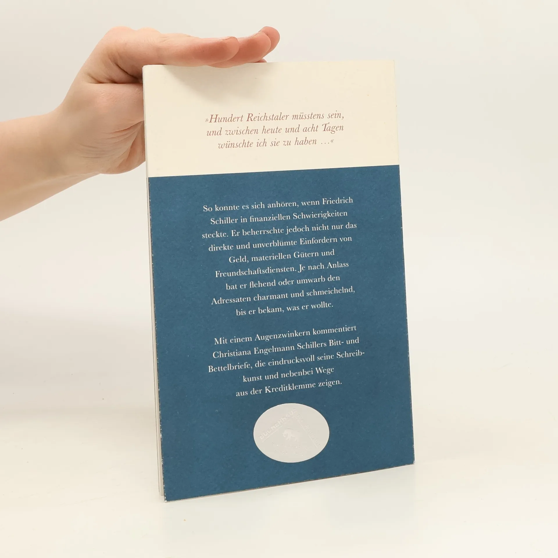 Der große Friedrich Schiller zeigt Wege aus der Kreditklemme: Als von Geldsorgen geplagter Anfänger verschickt Schiller zahlreiche Briefe an Freunde, Gläubiger, Verleger, Theaterleiter bis hin zu Landesherren. Er bittet um Rotwein oder einen Pelzmantel, vor allem aber fordert er Vorschüsse und Stundungen oder bettelt um Darlehen und höhere Honorare. Gekonnt und stilsicher zieht er dabei alle Register der Schreibkunst: mal unterwürfig-verschämt, mal als selbstbewusster Bestsellerautor. Die kommentierte Briefauswahl zeigt auf unterhaltsame und informative Weise den Aufstieg Schillers zum renommierten Dichter mit Adelstitel.