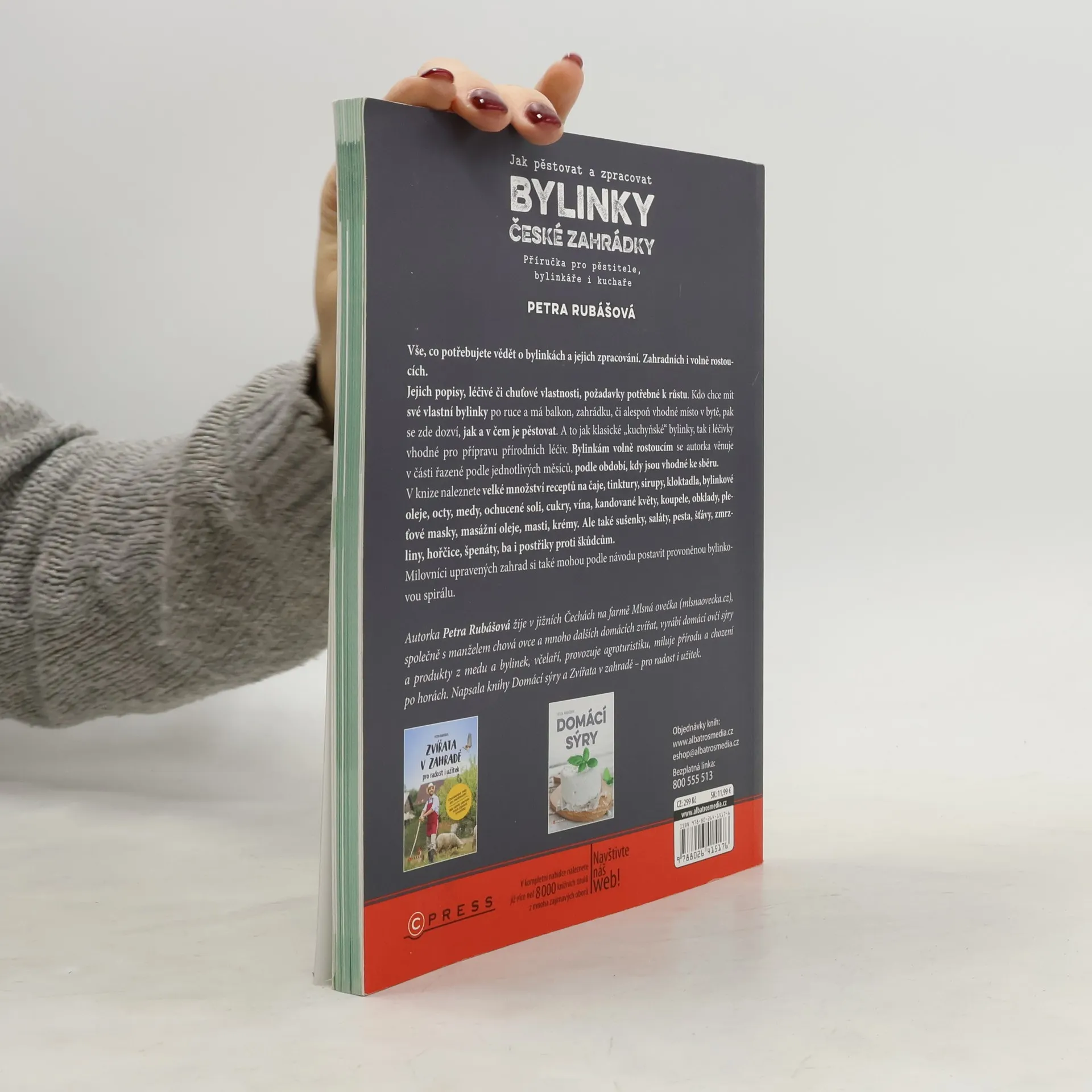 Vše, co potřebujete vědět o bylinkách a jejich zpracování. Zahradních i volně rostoucích. Jejich popisy, léčivé či chuťové vlastnosti, požadavky potřebné k růstu. Kdo chce mít své vlastní bylinky po ruce, a má balkon, zahrádku, či alespoň vhodné místo v bytě, pak se zde dozví, jak a v čem je pěstovat. A to jak klasické „kuchyňské“ bylinky, tak i léčivky vhodné pro přípravu přírodních léčiv. Bylinkám volně rostoucím se autorka věnuje v části řazené podle jednotlivých měsíců, podle období, kdy jsou vhodné ke sběru. V knize naleznete velké množství receptů na čaje, tinktury, sirupy, kloktadla, bylinkové oleje, octy, medy, ochucené soli, cukry, vína, kandované květy, koupele, obklady, pleťové masky, masážní oleje, masti, krémy. Ale také sušenky, saláty, pesta, šťávy, zmrzliny, hořčice, špenáty, ba i postřiky proti škůdcům. Milovníci upravených zahrad si také podle návodu mohou postavit provoněnou bylinkovou spirálu a pak ji vhodně osadit. Autorka Petra Rubášová žije v jižních Čechách na farmě Mlsná ovečka (mlsnaovecka.cz), společně s manželem chová ovce a mnoho dalších domácích zvířat, vyrábí domácí ovčí sýry a produkty z medu a bylinek, včelaří, provozuje agroturistiku, miluje přírodu a chození po horách