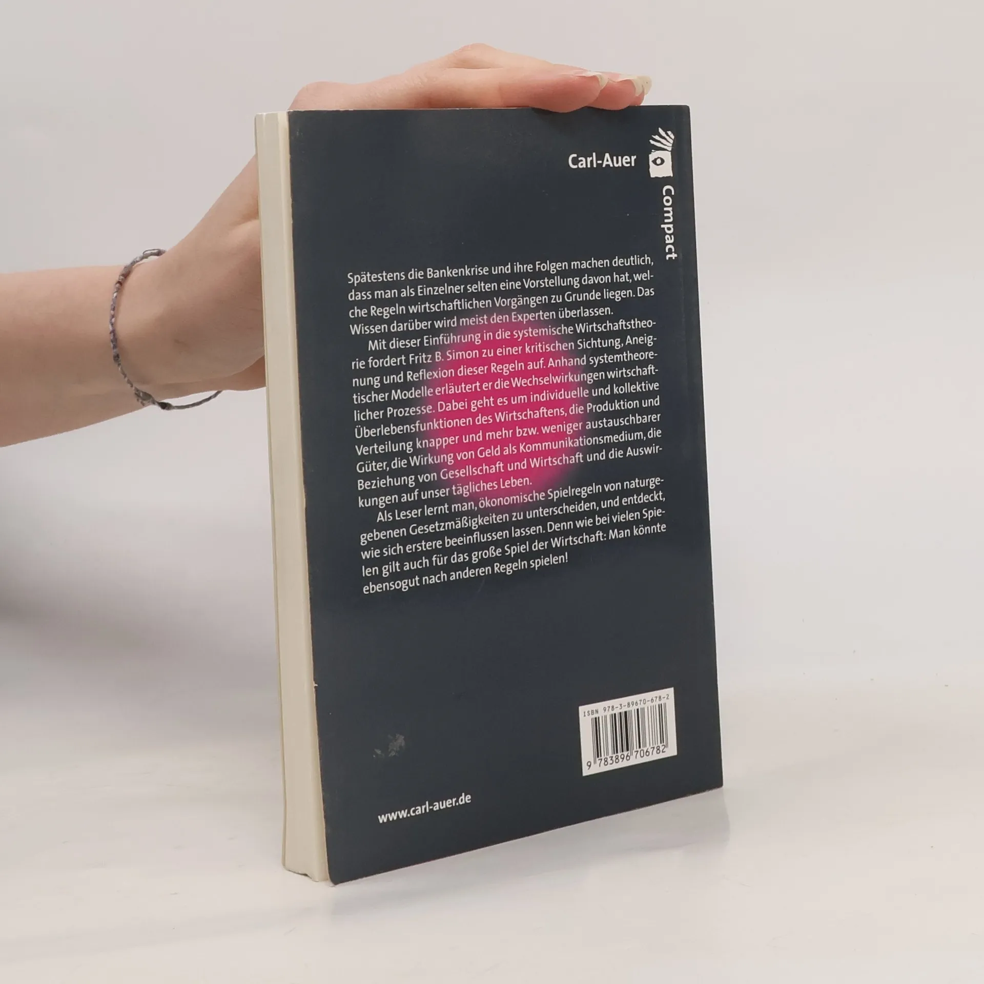 Mit dieser Einführung in die Wirtschaftstheorie fordert Fritz B. Simon zu einer „kritischen Sichtung, Aneignung und Reflexion“ dieser Regeln auf. Anhand systemtheoretischer Modelle erläutert er die Wechselwirkungen wirtschaftlicher Prozesse. Dabei geht es um die individuelle und kollektive Überlebensfunktion des Wirtschaftens, die Produktion und Verteilung knapper und mehr bzw. weniger austauschbarer Güter, die Wirkung von Geld als Kommunikationsmedium, die Beziehung von Gesellschaft und Wirtschaft und die Auswirkungen auf unser aller tägliches Leben.