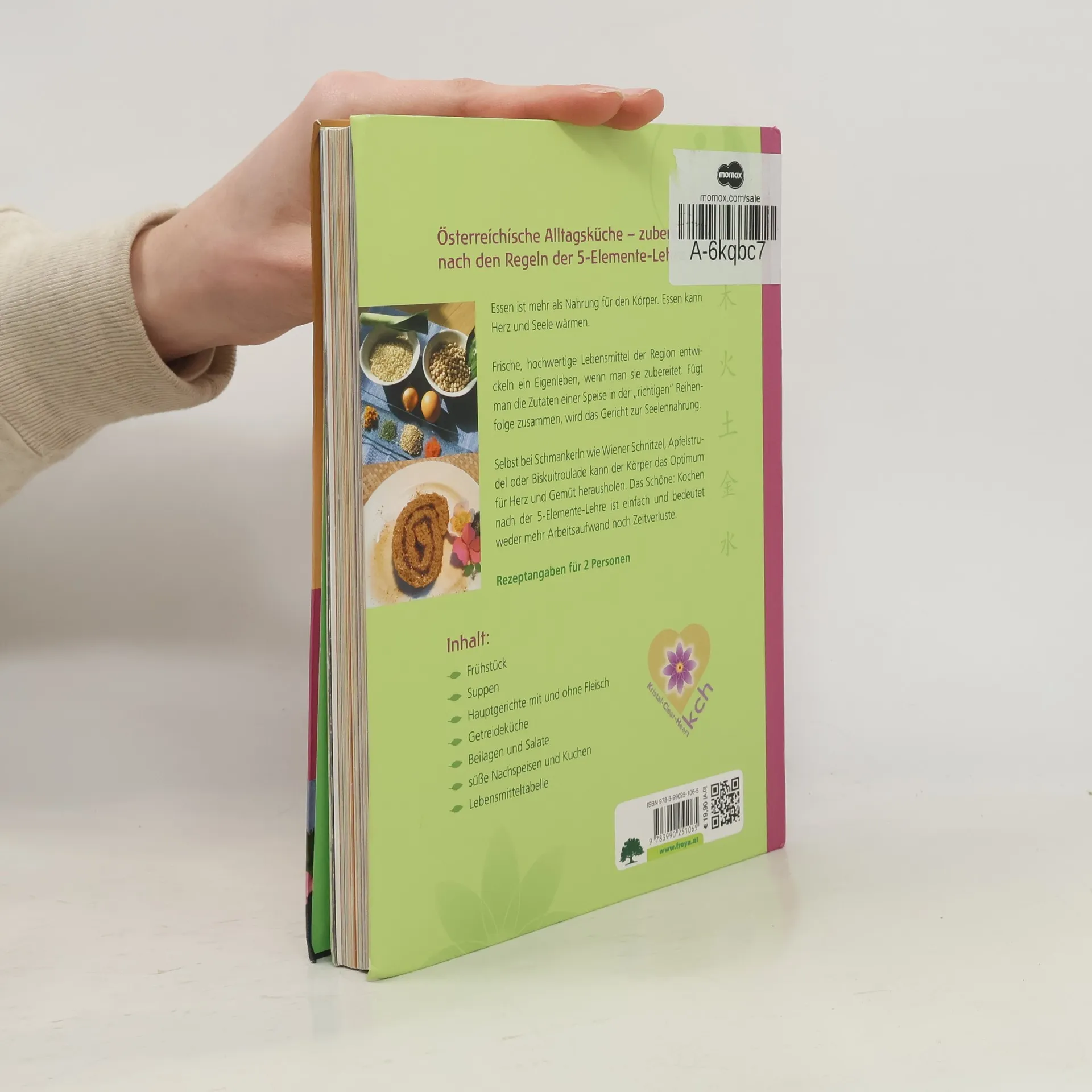 Essen ist mehr als Nahrung für den Körper. Essen kann Herz und Seele wärmen. Frische, hochwertige Lebensmittel der Region entwickeln ein Eigenleben, wenn man sie zubereitet. Fügt man die Zutaten einer Speise in der „richtigen“ Reihenfolge zusammen, wird das Gericht zur Seelennahrung. Selbst bei Schmankerln wie Wienerschnitzel, Schweinsbraten, Apfelstrudel oder Biskuitroulade kann der Körper das Optimum für Herz und Gemüt herausholen. Das Schöne: Kochen nach der 5-Elemente-Lehre ist einfach und bedeutet weder mehr Arbeitsaufwand noch Zeitverluste.
