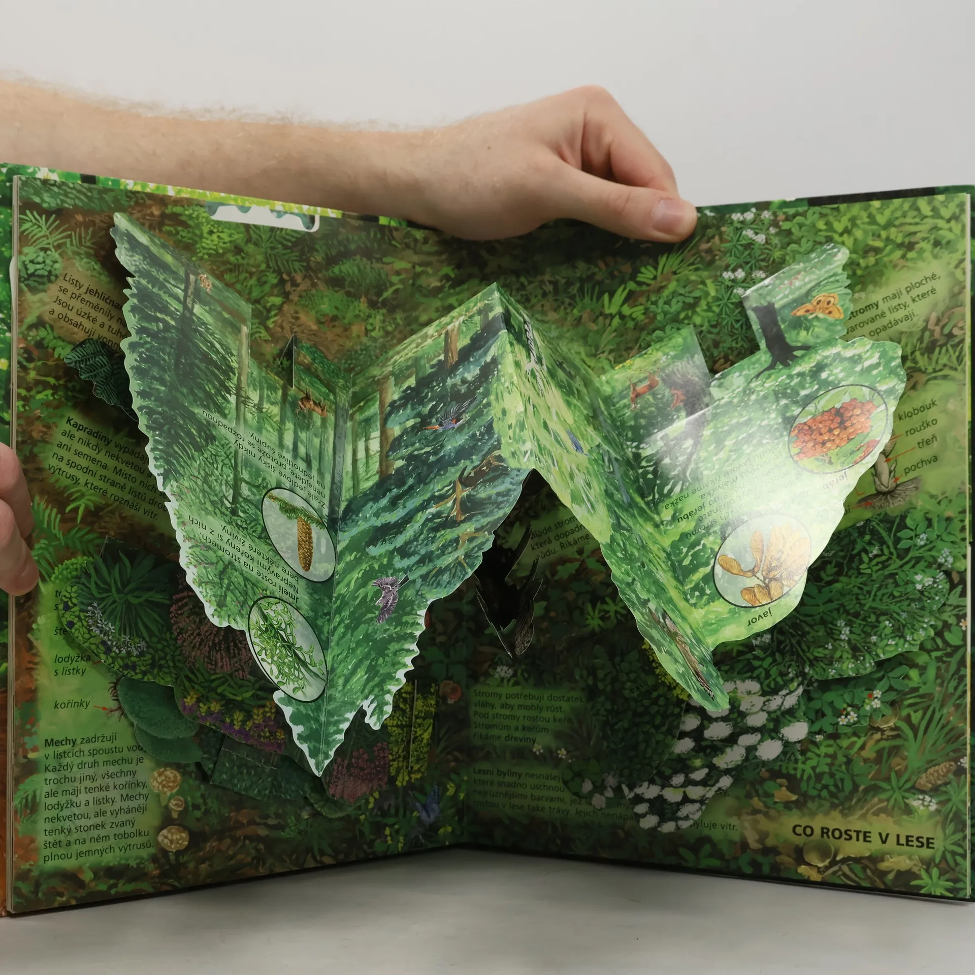 Kniha V našem lese se spoustou zábavných doplňků vám bude nenahraditelným průvodcem při procházce lesem. Hravou formou se například dozvíte, co se v lese děje během roku, kdo zde žije, na čí stopy jste právě narazili.