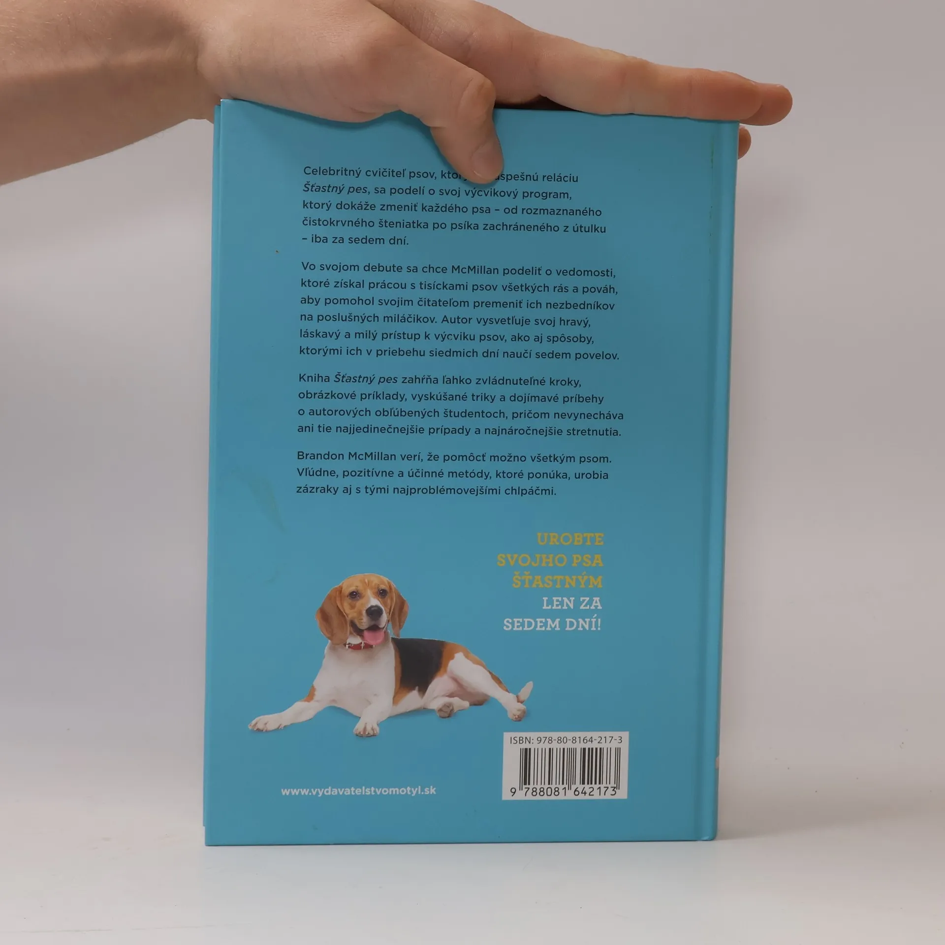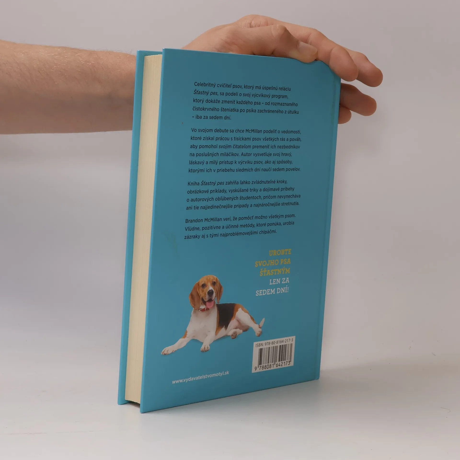 Celebritný cvičiteľ psov, ktorý má úspešnú reláciu Šťastný pes, sa podelí o svoj výcvikový program, ktorý dokáže zmeniť každého psa – od rozmaznaného čistokrvného šteniatka po psíka zachráneného z útulku– iba za sedem dní. Vo svojom debute sa chce McMillan podeliť o vedomosti, ktoré získal prácou s tisíckami psov všetkých rás a pováh, aby pomohol svojim čitateľom premeniť ich nezbedníkov na poslušných miláčikov. Autor vysvetľuje svoj hravý, láskavý a milý prístup k výcviku psov, ako aj spôsoby, ktorými ich v priebehu siedmich dní naučí sedem povelov. Kniha Šťastný pes zahŕňa ľahko zvládnuteľné kroky, obrázkové príklady, vyskúšané triky a dojímavé príbehy o autorových obľúbených študentoch, pričom nevynecháva ani tie najjedinečnejšie prípady a najnáročnejšie stretnutia. Brandon McMillan verí, že pomôcť možno všetkým psom. Vľúdne, pozitívne a účinné metódy, ktoré ponúka, urobia zázraky aj s tými najproblémovejšími chlpáčmi. Urobte svojho psa šťastným len za sedem dní!