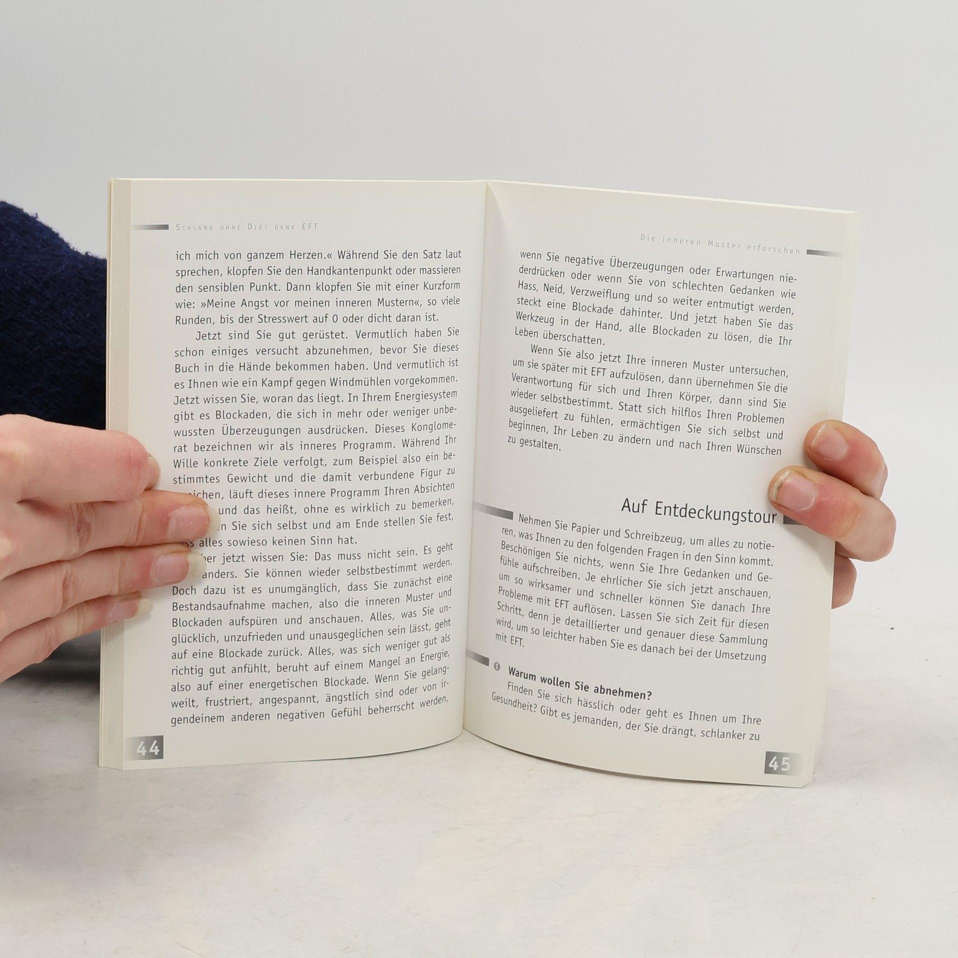 Warum funktionieren Diäten nicht? Es hat sich längst herumgesprochen, dass Diäten meist nur kurzfristigen Erfolg haben. Viele machen sogar die Erfahrung, nach einer Diät mehr zu wiegen als zuvor. Dieses Buch setzt dort an, wo das Übergewicht beginnt, nämlich bei den inneren Programmen, die Ihr Verhalten steuern. Das heißt nun aber nicht, dass tiefschürfende Analysen erstellt werden müssen. Mit EFT, der Technik zur emotionalen Freiheit, lösen Sie die Programme, die Ihre guten Absichten immer wieder sabotieren, ganz leicht, schnell und nachhaltig auf. EFT ist eine Methode, die sich längst in vielen verschiedenen Bereichen bewährt hat. Und sie ist auch bei Gewichtsproblemen äußerst hilfreich, denn Sie müssen keinerlei Ernährungsregeln studieren oder sich alles mögliche verkneifen. Wenn die Blockaden durch EFT gelöst werden, normalisiert sich Ihr Ernährungsverhalten und damit Ihr Körpergewicht ganz automatisch. Die Autorin ist EFT-Coach und hat diese Anwendung von EFT am eigenen Leib ausprobiert. So hat sie selbst dreißig Kilo abgenommen und teilt ihre Erfahrungen und ihr Wissen nun voller Freude in diesem Buch und in ihren Seminaren mit.