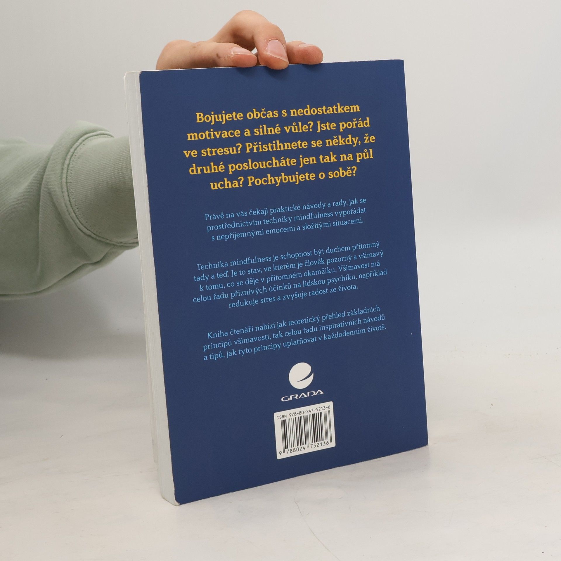 Jak se vyvarovat duševní prokrastinace pomocí všímavosti a bdělé pozornosti – detailní informace Bojujete občas s nedostatkem motivace a silné vůle? Jste pořád ve stresu? Přistihnete se někdy, že druhé posloucháte jen tak na půl ucha? Pochybujete o sobě? Právě na vás čekají praktické návody a rady, jak se prostřednictvím techniky mindfulness vypořádat s nepříjemnými emocemi a složitými situacemi. Technika mindfulness je schopnost být duchem přítomný tady a teď. Je to stav, ve kterém je člověk pozorný a všímavý k tomu, co se děje v přítomném okamžiku. Všímavost má celou řadu příznivých účinků na lidskou psychiku, například redukuje stres a zvyšuje radost ze života. Kniha čtenáři nabízí jak teoretický přehled základních principů všímavosti, tak celou řadu inspirativních návodů a tipů, jak tyto principy uplatňovat v každodenním životě.