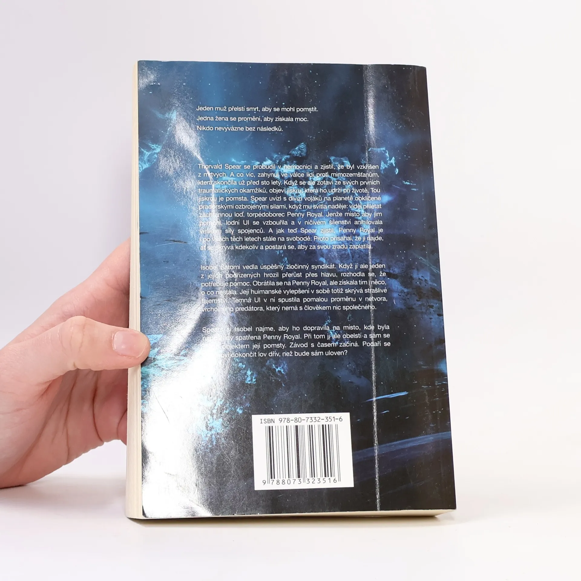 Thorvald Spear se probudil v nemocnici a zjistil, že byl vzkříšen z mrtvých. A co víc, zahynul ve válce lidí proti mimozemšťanům, která skončila už před sto lety. Když se ale zotaví ze svých prvních traumatických okamžiků, spatří jiskřičku světla, která ho udrží při životě. Tou jiskrou je pomsta. Spear uvízl s divizí vojáků na planetě obklíčené pradorskými ozbrojenými silami, když mu svitla naděje: viděl přilétat záchrannou loď, torpédoborec Penny Royal. Jenže místo aby jim pomohl, lodní UI se vzbouřila a v ničivém šílenství anihilovala veškeré síly spojenců. A jak teď Spear zjistil, Penny Royal je i po všech těch letech stále na svobodě. Proto přísahá, že ji najde, ať se skrývá kdekoliv a postará se, aby za svou zradu zaplatila. Isobel Satomi vedla úspěšný zločinný syndikát. Když jí ale jeden z jejích podřízených hrozil přerůst přes hlavu, rozhodla se, že potřebuje pomoc. Obrátila se na Penny Royal, ale obchodem s ní získala i něco, o co nestála. Její huimanské vylepšení v sobě totiž skrývá strašlivé tajemství. Temná UI v ní spustila pomalou proměnu v netvora, vrcholného predátora, který nemá s člověkem nic společného. Spears si Isobel najme, aby ho dopravila na místo, kde byla naposledy spatřena Penny Royal. Při tom ji ale přelstí a stane se sám objektem její pomsty. Závod s časem začíná. Podaří se Spearovi dokončit lov dřív, než bude sám uloven?