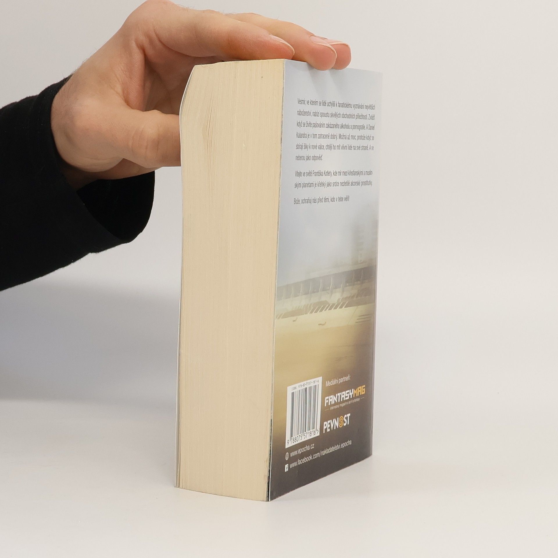 Bože, ochraňuj nás před těmi, kdo v tebe věří! Vítejte ve světě Františka Kotlety, kde mír mezi křesťanskými a muslimskými planetami je křehký jako srdce nezletilé alcorské prostitutky. Vesmír, ve kterém se lidé uchýlili k fanatickému vyznávání největších náboženství, nabízí spoustu skvělých obchodních příležitostí. Zvlášť když se živíte pašováním zakázaného alkoholu a pornografie. A Daniel Kalandra je v tom zatraceně dobrý. Možná až moc, protože když se sbírají šiky k nové válce, chtějí ho mít vlivní lidé na své straně. A ne neberou jako odpověď.