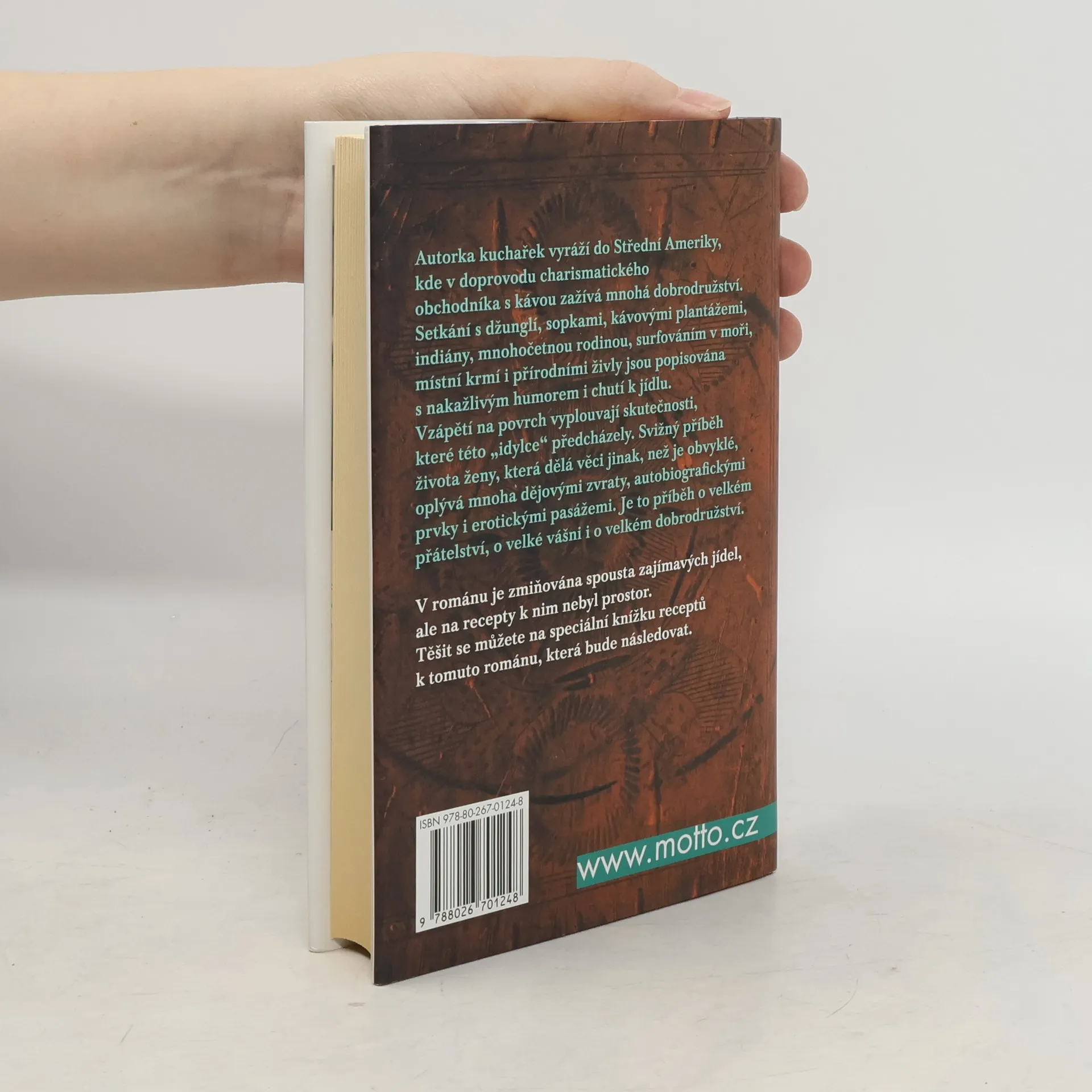 Autorka kuchařek vyráží do Střední Ameriky, kde v doprovodu neobyčejně charismatického obchodníka s kávou zažívá mnohá dobrodružství. Tento svižný příběh o ženě, která dělá věci jinak, než je obvyklé, oplývá mnoha dějovými zvraty a je popisován s nakažlivým humorem i chutí k jídlu.