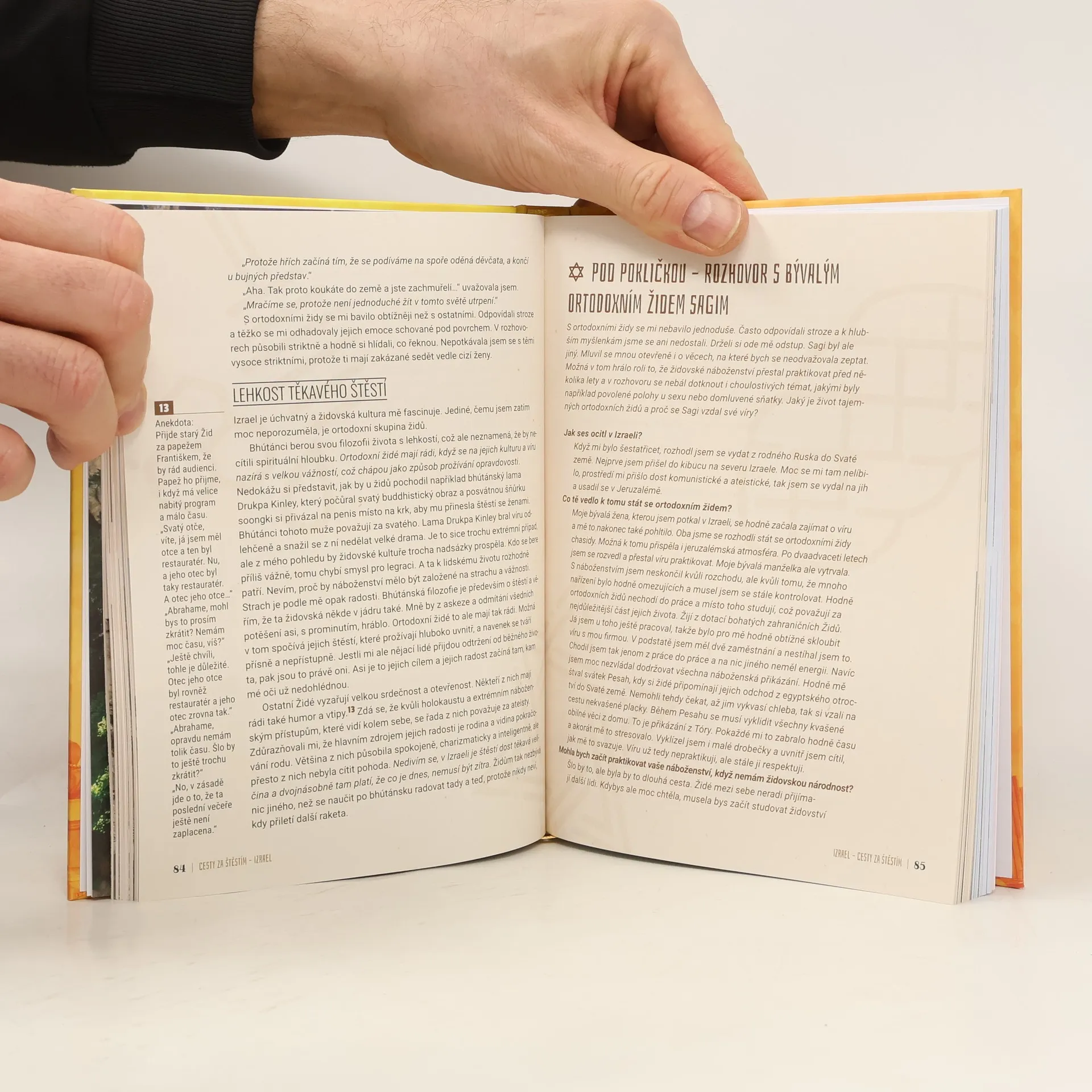 Říká se, že některé věci je lepší prožít, než se je pokoušet definovat. O štěstí to platí dvojnásob. Vydejte se spolu s autorkou do třech různých zemích – do Bhútánu, Izraele a na Island – a zjistěte, co jejich obyvatele činí šťastnými. Je to rodina, příroda, poznání nebo náboženství? Tento cestopis kromě zážitků, nenadálých situací a dobrodružství dává také prostřednictvím rozhovorů nahlédnout pod pokličku života obyčejných lidí a ukazuje, co pro ně znamená štěstí a jak prožívají svoji spiritualitu.