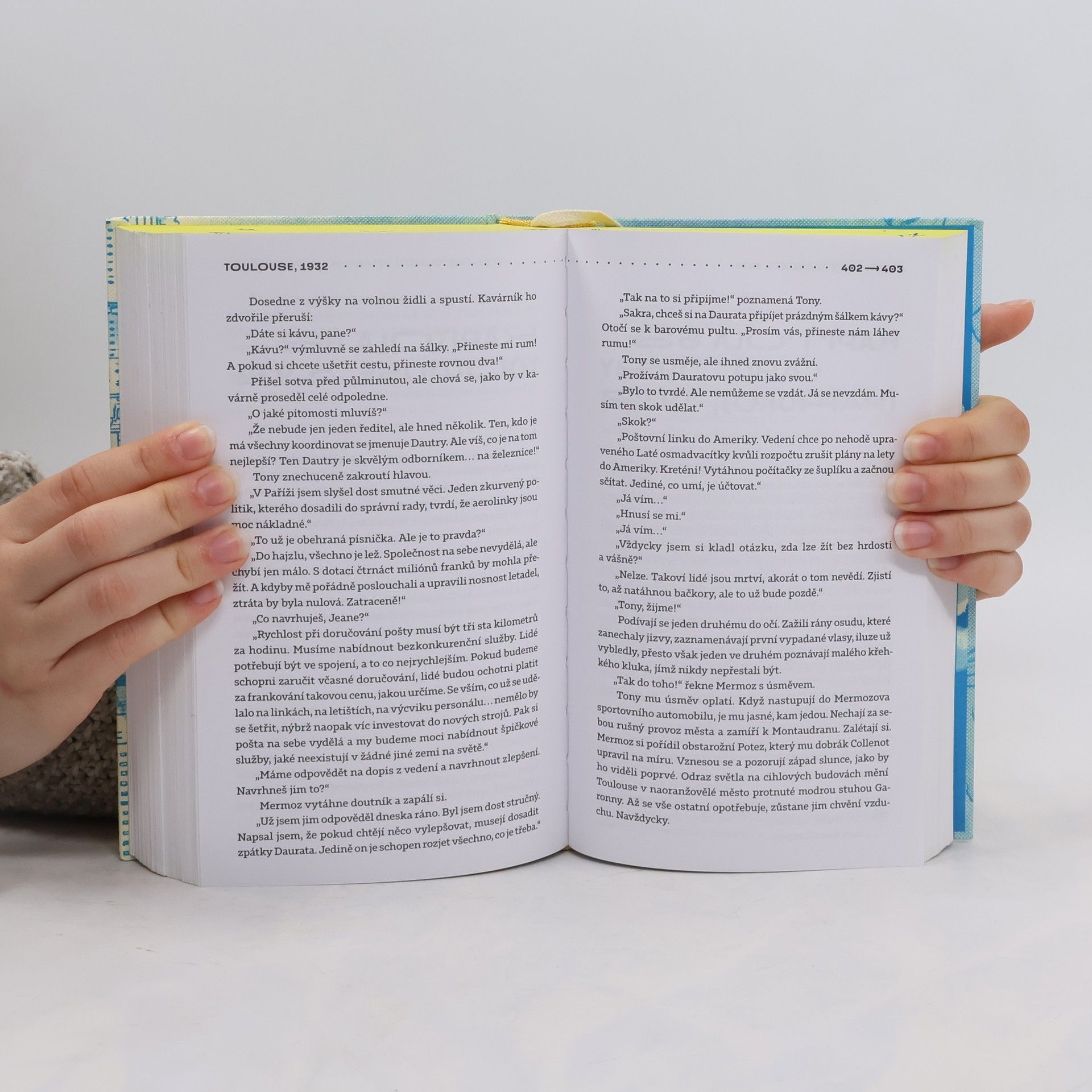 Francie, dvacátá léta minulého století. Letecká poštovní společnost Latécoère, předchůdkyně dnešní Air France, přijímá pouze ty nejodvážnější piloty. Mezi nimi jsou Jean Mermoz, Henri Guillaumet a Antoine de Saint-Exupéry, kteří se stávají průkopníky civilního letectví. Pro ně není žádná vzdálenost příliš dlouhá a žádný horský štít příliš vysoký. Jejich vášní je létání a odpovědnost doručit dopisy včas, napříč kontinenty a oceány. Po přistání se však opět setkávají se skutečností, která je mnohdy těžší než turbulence v oblacích. K otevřenému nebi, pečlivě dokumentovaný román, spojuje dobrodružství a exotiku s prvky historického a životopisného vyprávění. Příběh zachycuje fascinující a dnes polozapomenutá dobrodružství tří nerozlučných přátel, kteří stáli u zrodu civilního letectví. Zároveň je to literární pocta Antoinovi de Saint-Exupérymu, autorovi Malého prince, který navzdory válečným hrůzám dokázal vidět a vnímat život dětskýma očima až do své tragické smrti ve Středozemním moři.