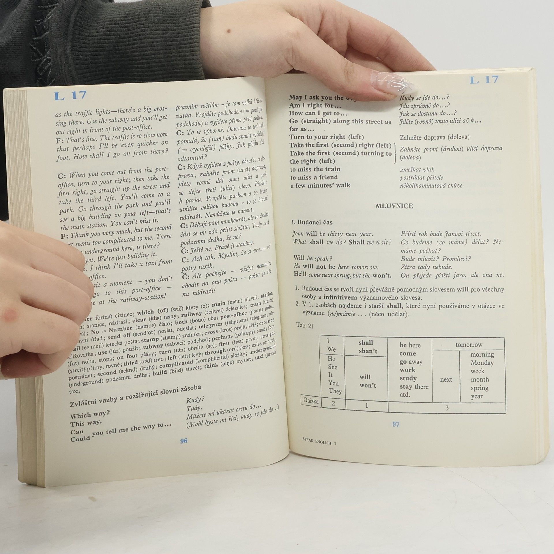 Kniha členěná do 30 lekcí. Každá lekce (mimo opakování učiva) obsahuje souvislý text, nejčastěji rozhovor, slovíčka k lekci, gramatickou část a cvičení. V závěru knihy je stručný přehled mluvnice, abecední anglicko-český a česko-anglický slovník k překladovým cvičením, klíč ke cvičením.