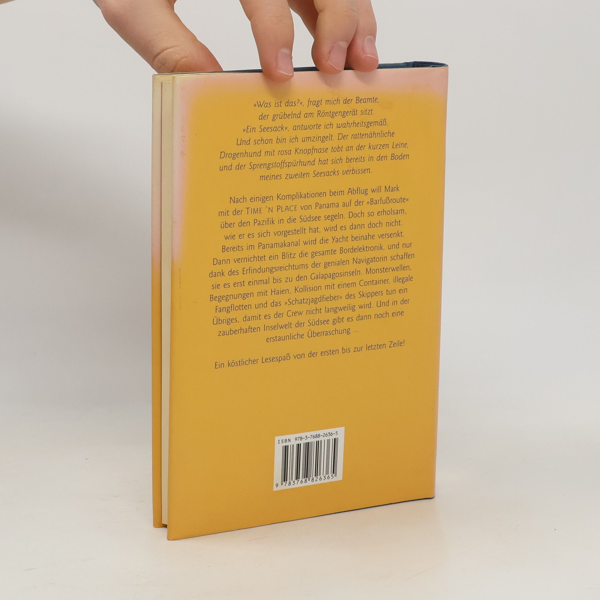„Was ist das?“, fragt der Beamte am Röntgengerät. „Ein Seesack“, antworte ich. Sofort bin ich umzingelt. Der Drogenhund tobt an der Leine, und der Sprengstoffhund hat sich in meinen zweiten Seesack verbissen. „Das sieht schlecht für Sie aus“, flüstert jemand. Handschellen klirren. „Alarm, eine Bombe!“, ruft der Mitarbeiter am Röntgengerät. Nach Schwierigkeiten beim Abflug von München erreicht Mark schließlich Panama und die TIME ’N PLACE. Mit Tango Delta, dem „besten Skipper der Welt“, und der engagierten Biologin Doc Holiday plant er, über die „Barfußroute“ in die Südsee zu segeln – ein vermeintlicher Sonntagsspaziergang. Doch der Törn wird alles andere als erholsam. Im Panamakanal wird die Yacht beinahe versenkt, und Tango Delta, besessen von Schatzsuche, bringt seine Crew in gefährliche Situationen. Ein Blitz zerstört die gesamte Bordelektronik, und nur dank der Einfälle der Navigatorin erreichen sie die Galapagosinseln. Auf dem offenen Ozean läuft die Yacht nachts in ein Algenfeld und auf einen Container auf. Tagelang kämpfen die Segler, um die TIME ’N PLACE zu reparieren. Monsterwellen, Haie und illegale Fangflotten sorgen dafür, dass es nie langweilig wird. In der bezaubernden Südsee erwartet sie zudem eine erstaunliche Überraschung …