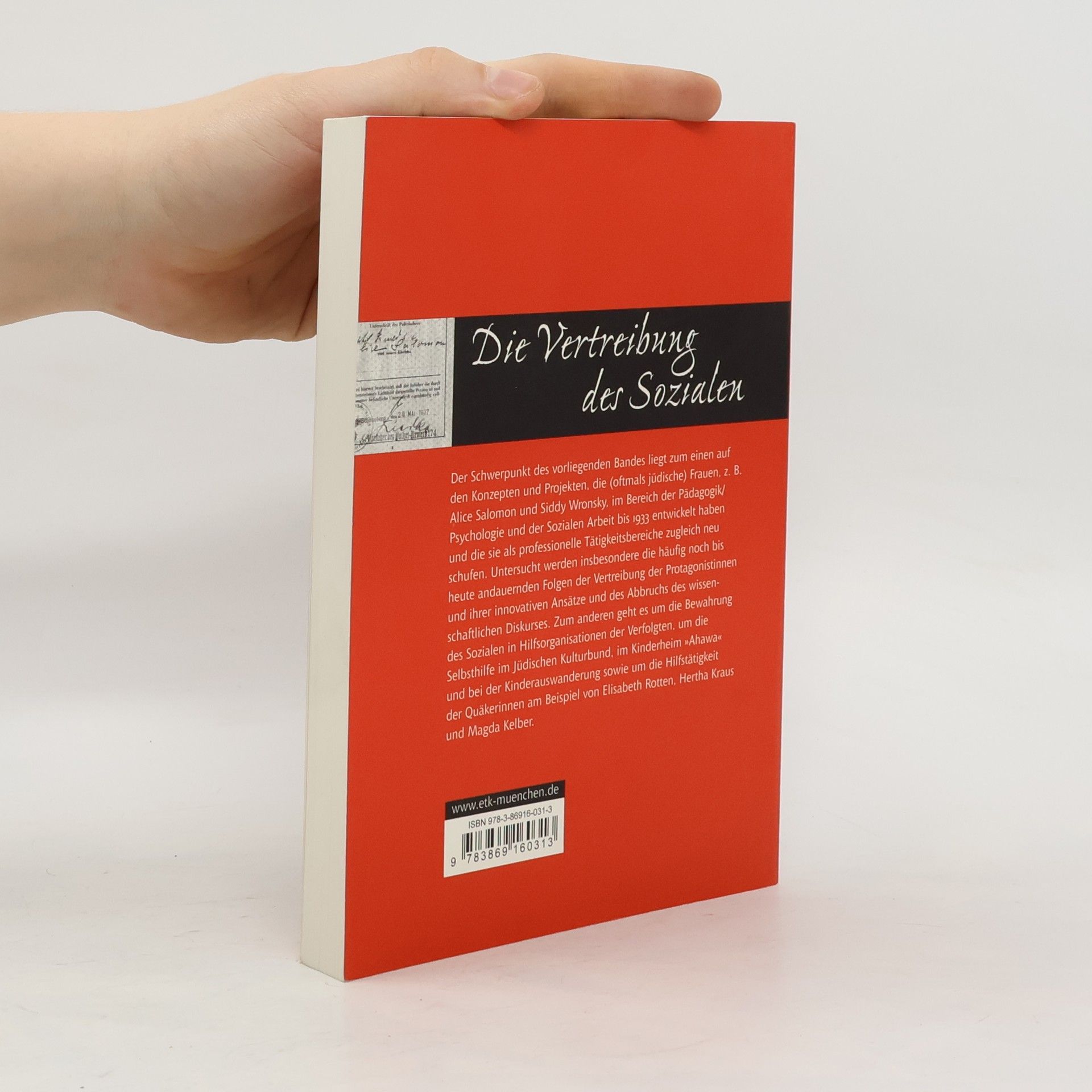 Der vorliegende Band befasst sich mit der Thematik der „Vertreibung des Sozialen“. Der Schwerpunkt liegt zum einen auf den Konzepten und Projekten, die (oftmals jüdische) Frauen, z. B. Alice Salomon und Siddy Wronsky, im Bereich der Pädagogik/ Psychologie und der Sozialen Arbeit bis 1933 entwickelt haben und die sie als professionelle Tätigkeitsbereiche zugleich neu schufen. Untersucht werden insbesondere die häufig noch bis heute andauernden Folgen der Vertreibung der Protagonistinnen und ihrer innovativen Ansätze und des Abbruchs des wissenschaftlichen Diskurses. Zum anderen geht es um die Bewahrung des Sozialen in Hilfsorganisationen der Verfolgten, um die Selbsthilfe im Jüdischen Kulturbund, im Kinderheim „Ahawa“ und bei der Kinderauswanderung sowie um die Hilfstätigkeit der Quäkerinnen am Beispiel von Elisabeth Rotten, Hertha Kraus und Magda Kelber.