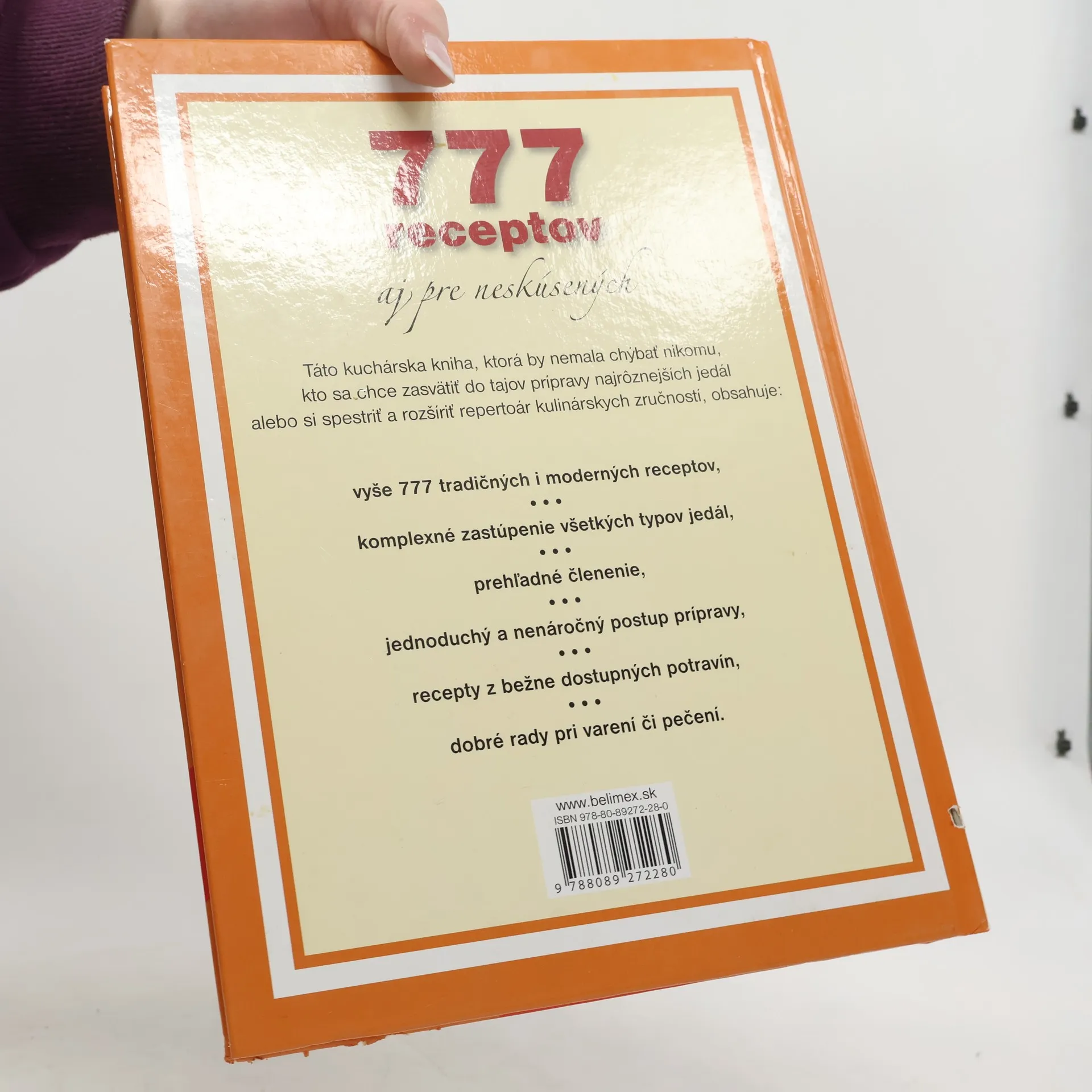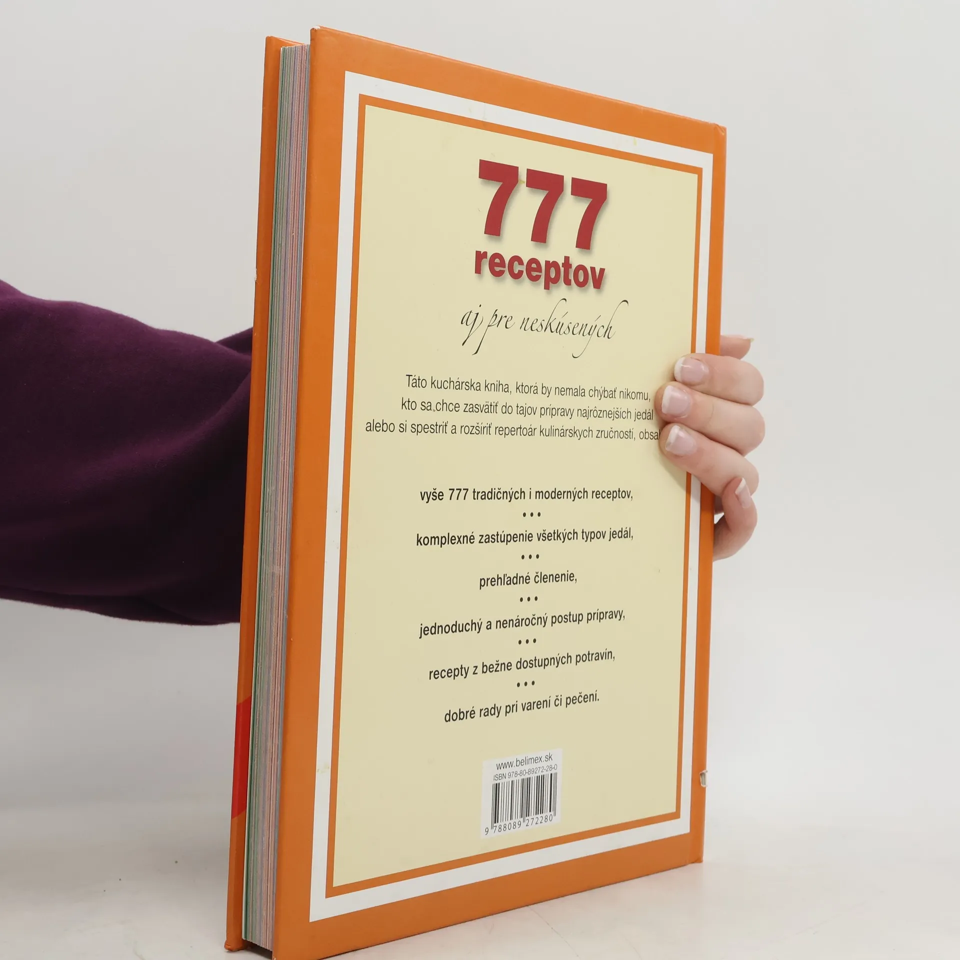 Táto kuchárska kniha, ktorá by nemala chýbať nikomu, kto sa chce zasvätiť do tajov prípravy najrôznejších jedál alebo si spestriť a rozšíriť receptoár kulinárskych zručností, obsahuje: vyše 777 tradičných i moderných receptov, komplexné zastúpenie všetkých typov jedál, prehľadné členenie, jednoduchý a nenáročný postup prípravy, recepty z bežne dostupných potravín, dobré rady pri varení či pečení.