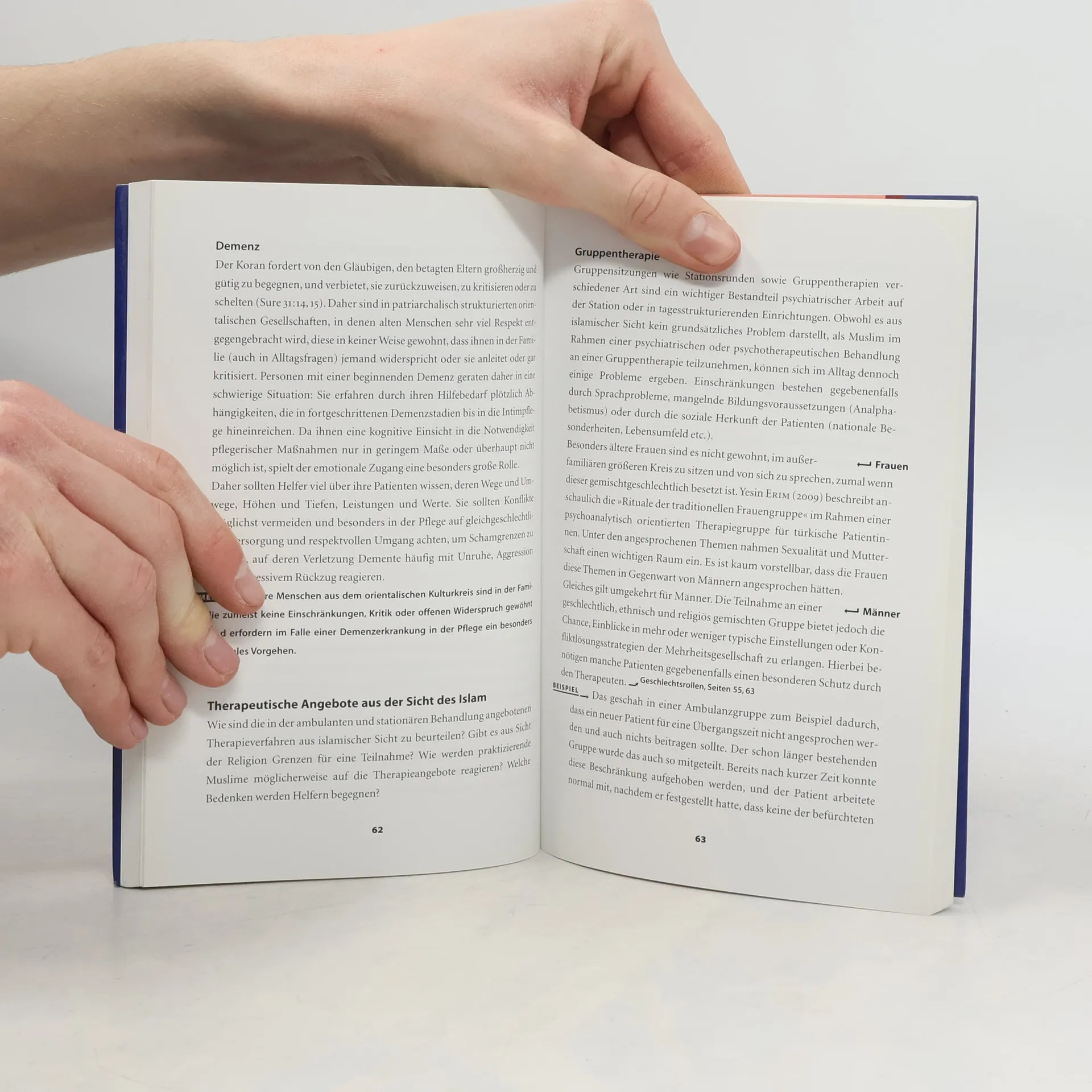 Die Verunsicherung im Gesundheitswesen über das richtige Verhalten gegenüber muslimischen Patienten ist immer noch groß. Dieser Band fasst pointiert zusammen, was Helfer berücksichtigen müssen, wenn sie Muslime erfolgreich behandeln wollen. Denn die Behandlung von seelischen Erkrankungen darf der islamischen Lehre nicht widersprechen, soll sie eine Chance haben, von den Betroffenen akzeptiert zu werden. Ibrahim Rüschoff und Malika Laabdallaoui geben einen Einblick in die Themen und Konfliktbereiche, die auftreten können, wenn praktizierende Muslime sich in eine Therapie begeben. Das reicht vom Verständnis darüber, was eine psychische Erkrankung ist, bis hin zu einem angemessenen Verhalten beim Hausbesuch. Sie vermitteln damit wertvolle interkulturelle Kompetenz. Empfehlenswert für alle, die mit muslimischen Patienten zu tun haben, besonders in Kliniken und Altenheimen, da sie sich hier langfristig auf die religiösen Besonderheiten einstellen müssen.
