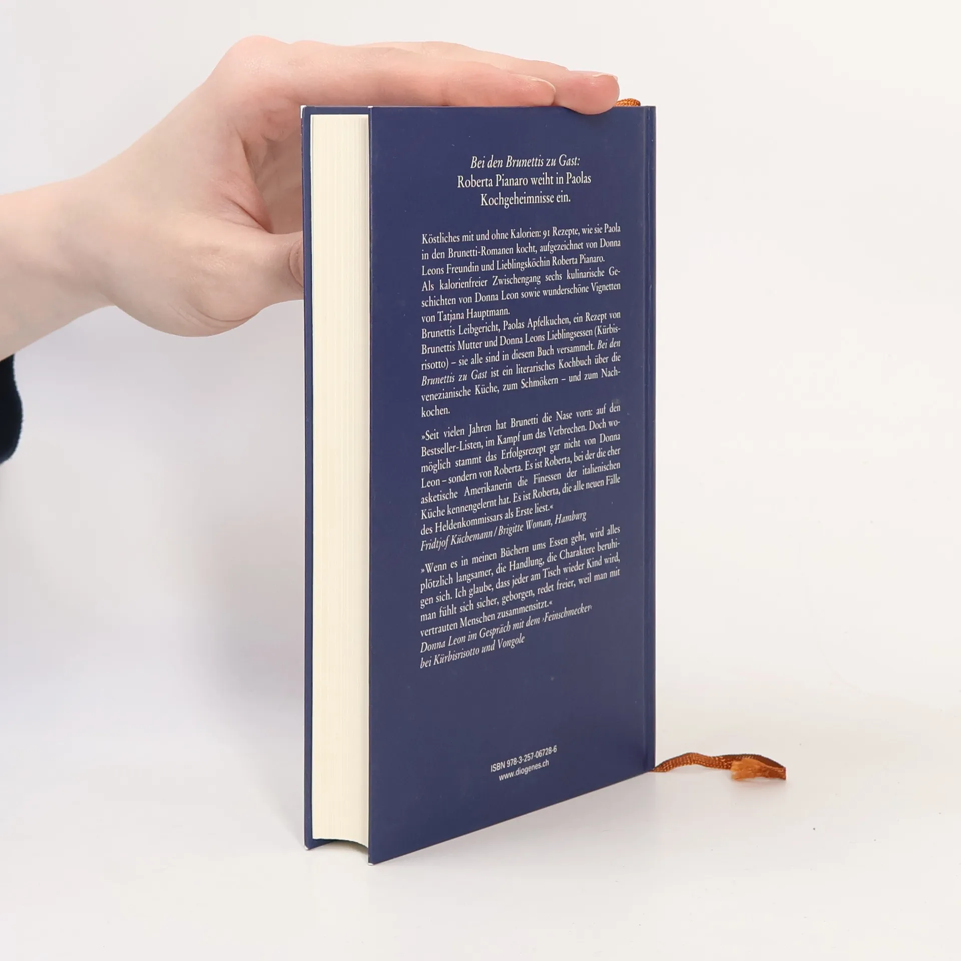 Köstliches mit und ohne Kalorien: 91 Rezepte, wie sie Paola in den Brunetti-Romanen kocht, aufgezeichnet von Donna Leons Freundin und Lieblingsköchin Roberta Pianaro. Als kalorienfreier Zwischengang sechs kulinarische Geschichten von Donna Leon sowie wunderschöne Vignetten von Tatjana Hauptmann.