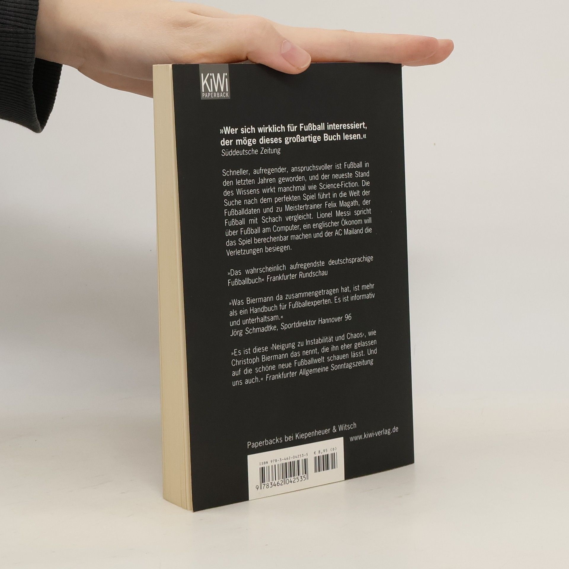 Das aufregendste deutschsprachige Fußballbuch – jetzt als KiWi-Paperback. Christoph Biermanns außergewöhnliches Werk hat sowohl Leser als auch Kritiker begeistert. Der Autor sucht nach dem perfekten Spiel und der Formel für den Sieg, indem er mit Felix Magath über Schach spricht, Experten konsultiert und die Wahrscheinlichkeitsrechnung auf das Spiel anwendet. Fußball ist das beste Spiel, weil seine Idee einfach ist, während die Möglichkeiten komplex und unerschöpflich bleiben. Die digitale Wende des Spiels ermöglicht eine tiefere Analyse am Computer, was die Suche nach Spielern revolutionieren und unser Verständnis des Spiels verändern wird. Dieses Buch beleuchtet den aktuellen Stand und die Entstehung einer neuen Fußballwissenschaft, die das Spiel nach bislang unbekannten Mustern untersucht. Wir müssen uns von alten Meinungen verabschieden, können aber smartere Antworten auf die Fragen von Sieg und Niederlage finden. Das Buch soll den Spaß am Fußball steigern und die Diskussionen darüber interessanter machen. Christoph Biermann, einer der renommiertesten Fußballjournalisten Deutschlands, behandelt das Spiel in seinen Artikeln und Büchern stets kenntnisreich und unterhaltsam. Die Ideen in diesem Werk mögen heute wie Science-Fiction erscheinen, werden jedoch bald im Fußball Alltag sein.