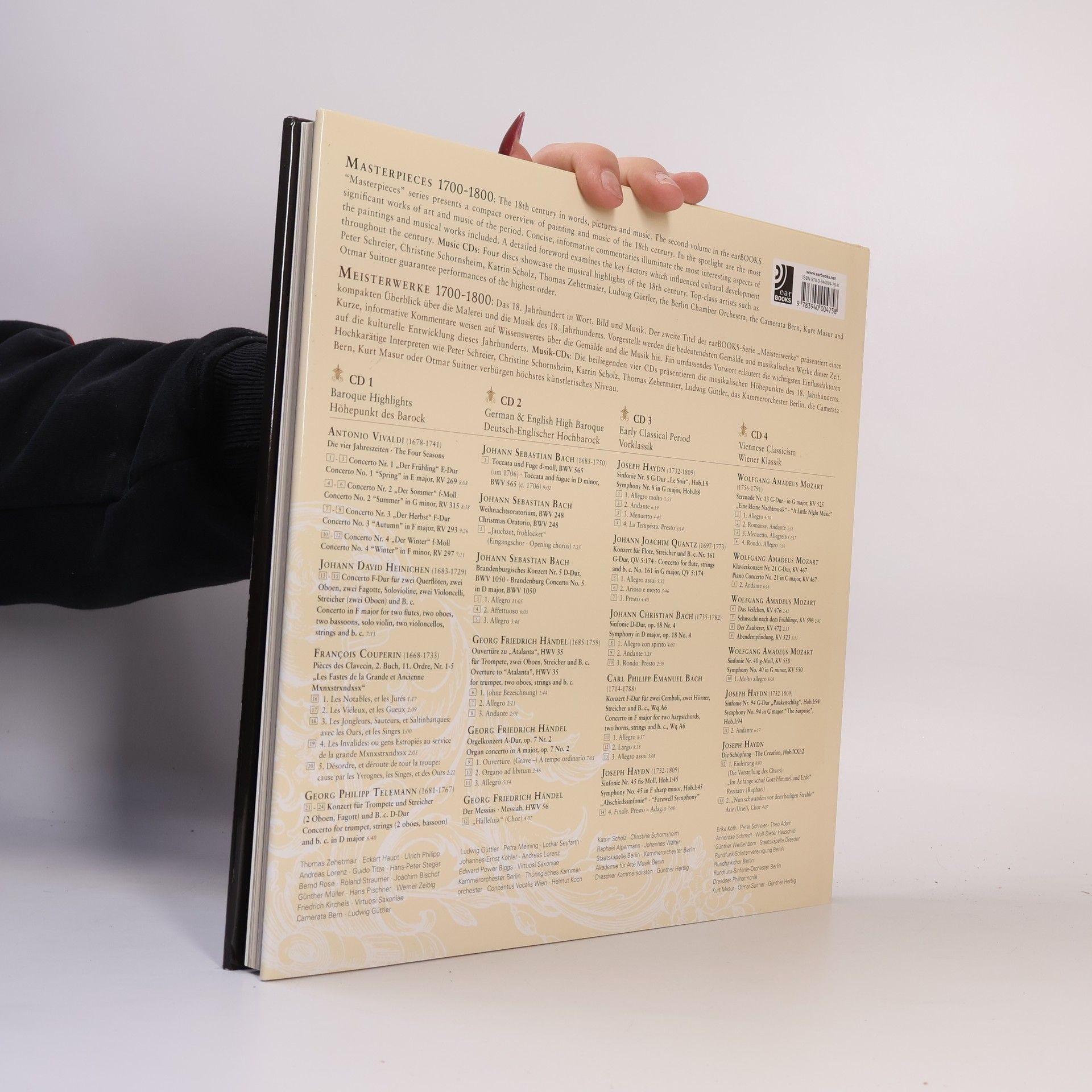 These three centuries offer a broad range of artists and their works. Sometimes it is hard to find access and to maintain an overview. The new earBOOK Series Masterpieces offers an ideal package, which gives the reader a compact, comprehensible, and entertaining overview of the painting and the music of each century. This brand new concept is unique: Each book presents and comments on the most important paintings of the respective century in chronological order.