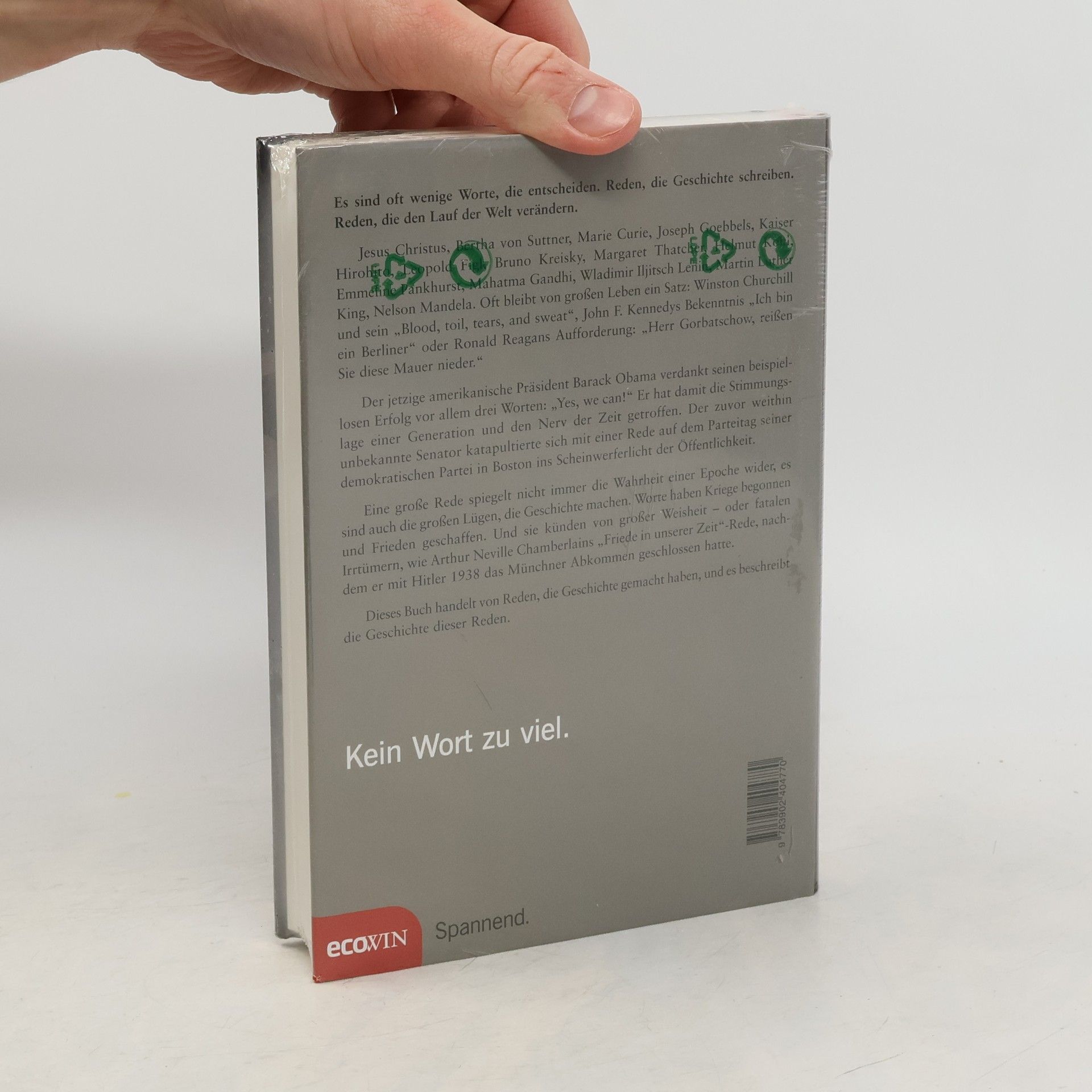 Es sind oft wenige Worte, die entscheiden. Reden, die Geschichte schreiben. Reden, die den Lauf der Welt verändern. Jesus Christus, Bertha von Suttner, Marie Curie, Joseph Goebbels, Kaiser Hirohito, Leopold Figl, Bruno Kreisky, Margaret Thatcher, Helmut Kohl, Lech Walesa, Václav Havel, Michail Gorbatschow, Martin Luther King, Nelson Mandela. Oft bleibt von großen Leben ein Satz: Winston Churchill und sein „Blood, toil, tears, and sweat“, John F. Kennedys Bekenntnis „Ich bin ein Berliner“ oder Ronald Reagans Aufforderung: „Herr Gorbatschow, reißen Sie diese Mauer nieder.“ Der jetzige amerikanische Präsident Barack Obama verdankt seinen beispiellosen Erfolg vor allem drei Worten: „Yes, we can!“ Er hat damit die Stimmungslage einer Generation und den Nerv der Zeit getroffen. Der zuvor weithin unbekannte Senator katapultierte sich mit einer Rede auf dem Parteitag seiner demokratischen Partei in Boston ins Scheinwerferlicht der Öffentlichkeit. Eine große Rede spiegelt nicht immer die Wahrheit einer Epoche wider, es sind auch die großen Lügen, die Geschichte machen. Worte haben Kriege begonnen und Frieden geschaffen. Und sie künden von großer Weisheit – oder fatalen Irrtümern, wie Neville Chamberlains „Friede in unserer Zeit“-Rede, nachdem er mit Hitler 1938 das Münchner Abkommen geschlossen hatte. Dieses Buch handelt von Reden, die Geschichte gemacht haben und es beschreibt die Geschichte dieser Reden.