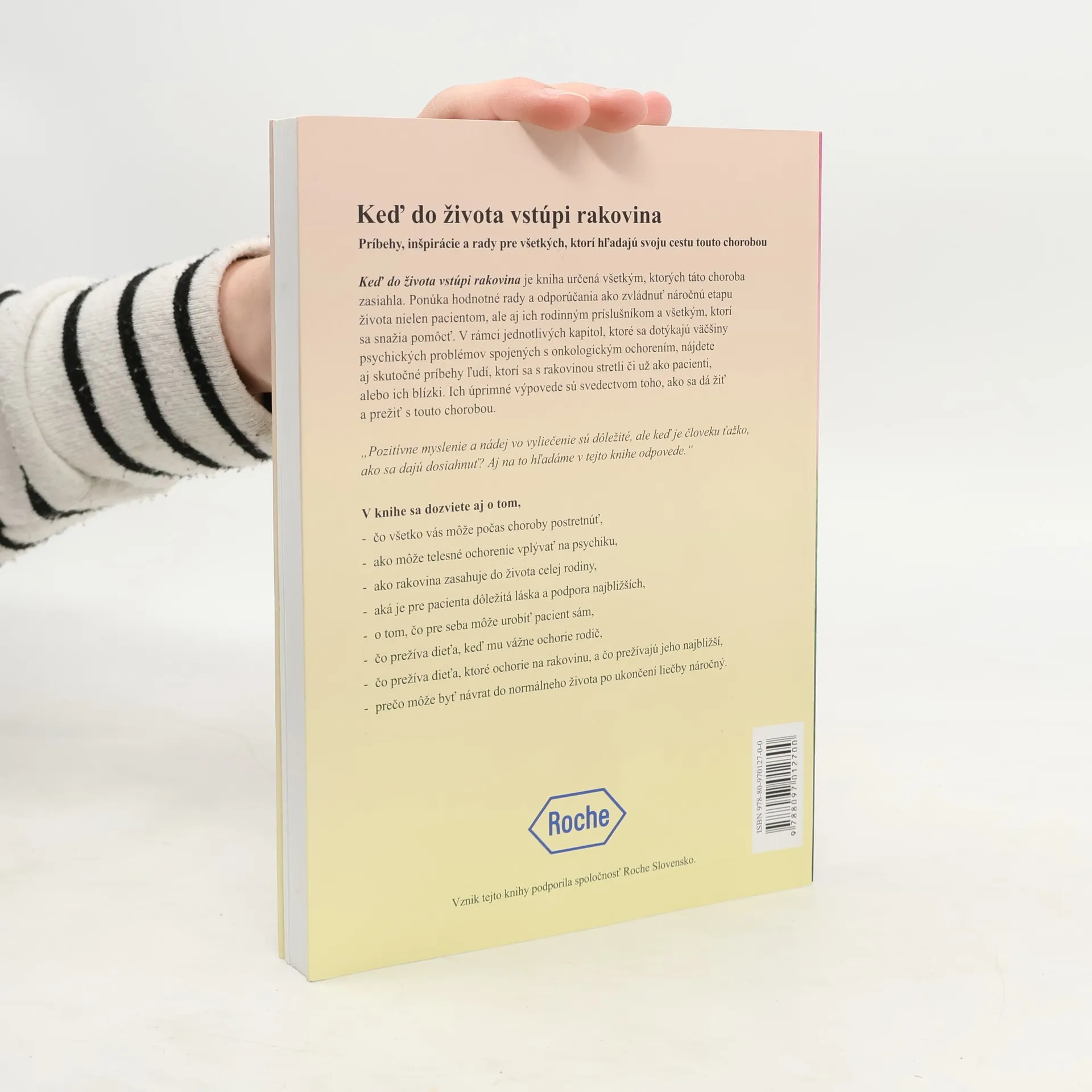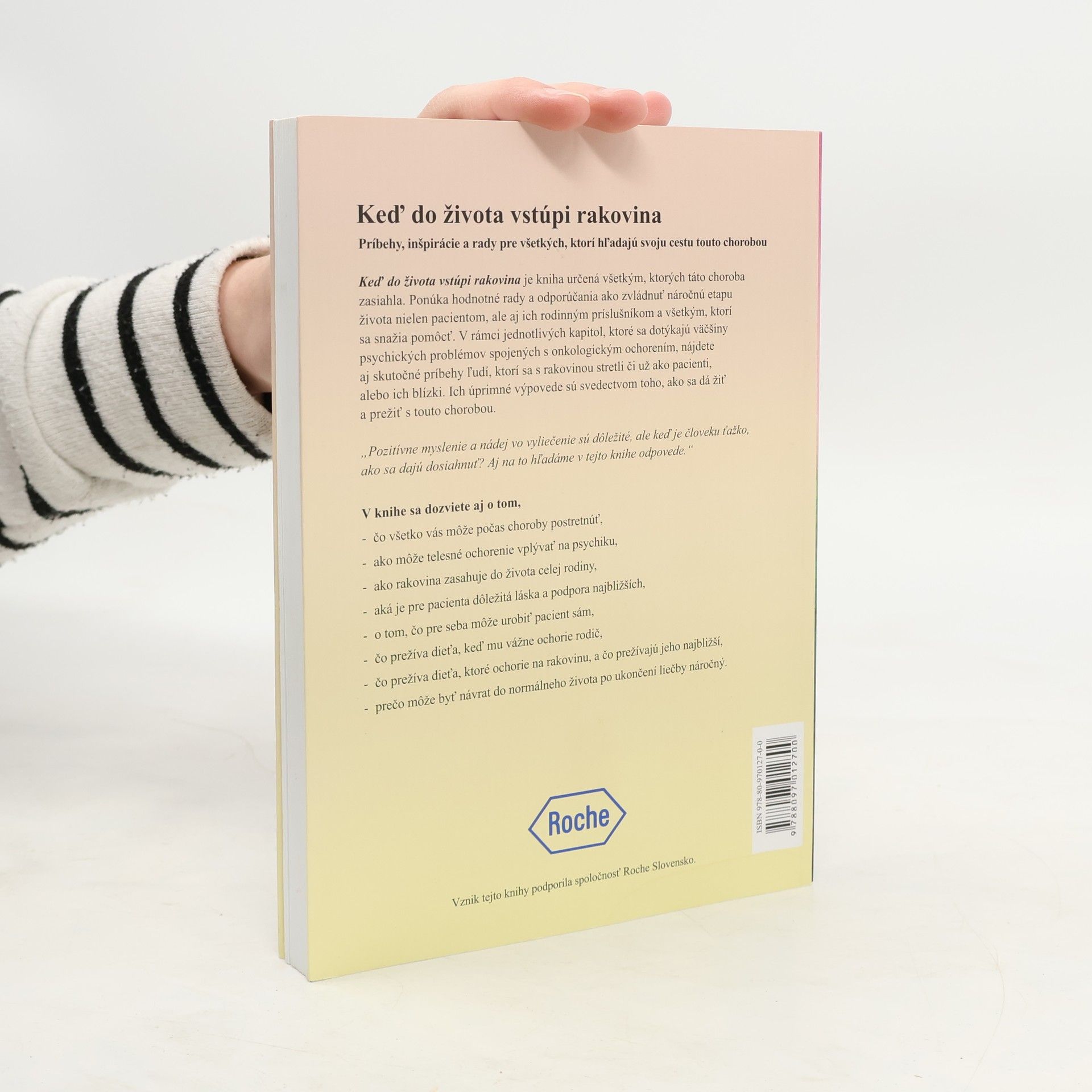 Kniha je určená všetkým, ktorých zasiahla rakovina, ponúkajúca cenné rady a odporúčania pre pacientov, ich rodiny a tých, ktorí chcú pomôcť. Obsahuje kapitoly zamerané na psychické problémy spojené s onkologickým ochorením, ako aj skutočné príbehy ľudí, ktorí sa s rakovinou stretli. Tieto úprimné výpovede ilustrujú, ako sa dá žiť a prežiť s touto chorobou. Kniha sa zaoberá otázkami, ako sa vyrovnať s ťažkým obdobím, aký vplyv má telesné ochorenie na psychiku, a akú úlohu zohráva podpora blízkych. Zisťuje, čo prežíva dieťa, keď mu ochorie rodič, a ako sa vyrovnáva dieťa s rakovinou. Taktiež sa venuje náročnosti návratu do normálneho života po liečbe. Autorka zdôrazňuje, že zatiaľ čo lekári sa sústreďujú na liečbu tela, duša pacienta často zostáva opomenutá. Kniha ponúka myšlienky a problémy, ktoré vychádzajú zo skutočných príbehov, a snaží sa poskytnúť odpovede na otázky o pozitívnom myslení a nádeji vo vyliečenie. Osobné výpovede o úspechoch i pádoch môžu inšpirovať tých, ktorí sa nachádzajú v ťažkej situácii. Každý si musí nájsť svoju vlastnú cestu, ako sa s chorobou vyrovnať, a kniha má byť sprievodcom na tejto ceste.