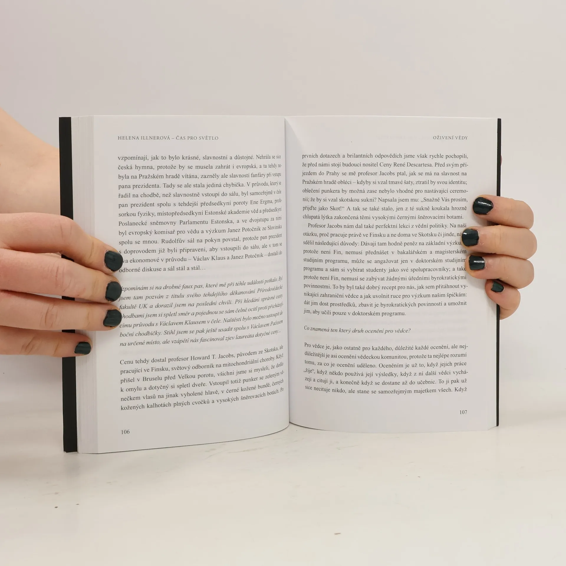 Prof. Helena Illnerová je přední česká fyzioložka a biochemička, bývalá předsedkyně AV ČR, České učené společnosti, České komise při UNESCO aj. Vedle aktivit spojených s vědou působí i na veřejnosti. V 70. a 80. letech založila a vedla turistický klub, dodnes se angažuje ve skautském hnutí, v roce 2008 kandidovala v senátních volbách za Stranu zelených. Dlouhodobě se aktivně věnuje popularizaci vědy, roli vzdělání ve společnosti, ale také otázkám etiky. Rozhovor, který s ní zasvěceně vede její profesní kolega, prof. Pavel Kovář, mapuje její život od rodinného zázemí a osobnostního formování po vědecké a veřejné působení. Dotýká se nejen otázek spojených s vědou a vzděláním v naší společnosti, ale také otázek hodnot, výchovy, úcty k tradici.