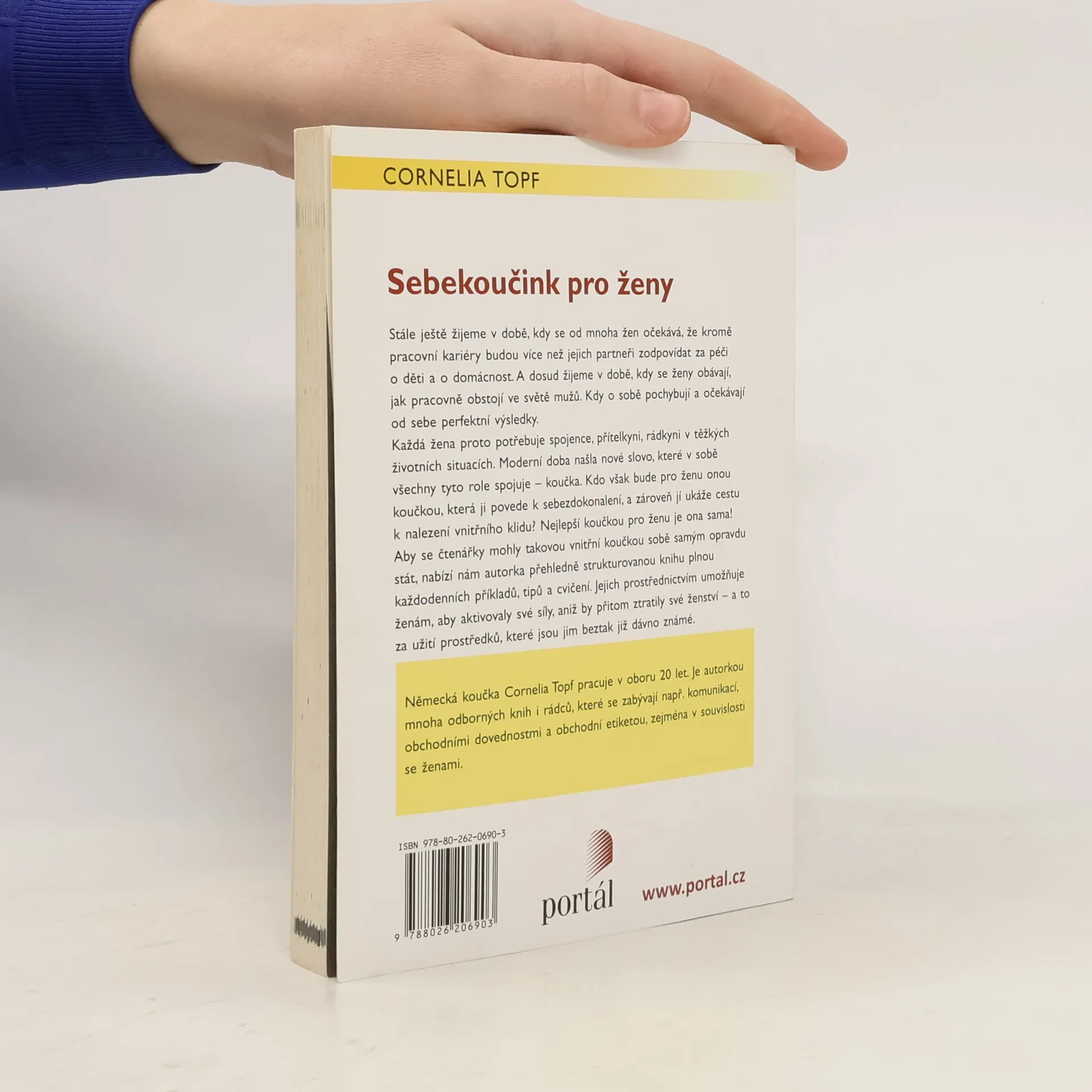 Stále ještě žijeme v době, kdy se od mnoha žen očekává, že kromě pracovní kariéry budou více než jejich partneři zodpovídat za péči o děti a o domácnost. A dosud žijeme v době, kdy se ženy obávají, jak pracovně obstojí ve světě mužů. Kdy o sobě pochybují a očekávají od sebe perfektní výsledky. Každá žena proto potřebuje spojence, přítelkyni, rádkyni v těžkých životních situacích. Moderní doba našla nové slovo, které v sobě všechny tyto role spojuje – koučka. Kdo však bude pro ženu touto koučkou, která ji povede k sebezdokonalení a zároveň jí ukáže cestu k nalezení vnitřního klidu? Nejlepší koučkou pro ženu je ona sama! Aby se čtenářky mohly takovou vnitřní koučkou sobě samým opravdu stát, nabízí nám autorka přehledně strukturovanou knihu plnou každodenních příkladů, tipů a cvičení. Jejich prostřednictvím umožňuje ženám, aby aktivovaly své síly, aniž by přitom ztratily své ženství – a to za užití prostředků, které jsou jim beztak již dávno známé. Německá koučka Cornelia T opf pracuje v oboru 20 let. Je autorkou mnoha odborných knih i rádců, které se zabývají např. komunikací, obchodními dovednostmi a obchodní etiketou, zejména v souvislosti se ženami.