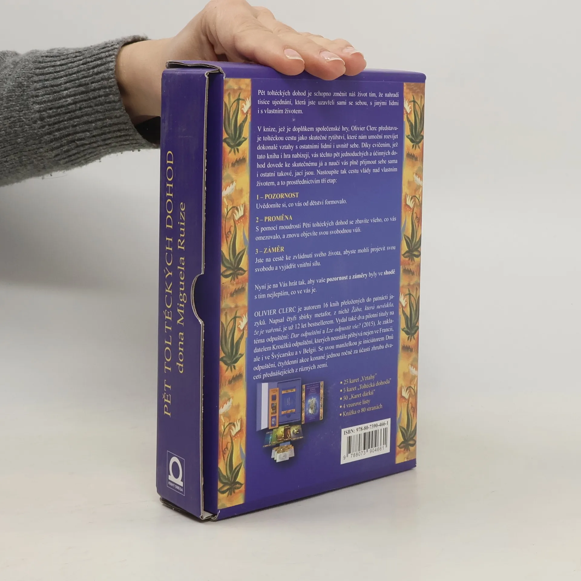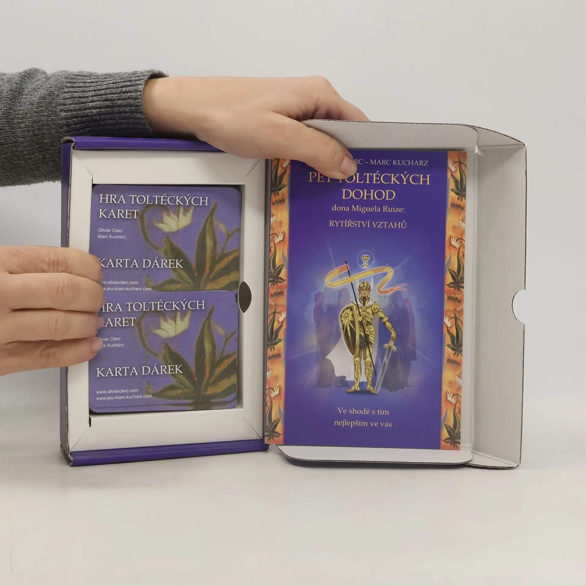 Pět toltéckých dohod je schopno změnit náš život tím, že nahradí tisíce omezujících dohod, které jste uzavřeli se sebou samými, s jinými lidmi i se životem. V knize provázející tuto hru Olivier Clerc představuje toltéckou cestu jako skutečné vztahové rytířství, jež nám umožní rozvíjet dokonalé vztahy s jinými i se sebou samými. Díky cvičením, jež tato kniha a hra zároveň nabízí, vás těchto pět jednoduchých a účinných dohod dovede k tomu, čím skutečně jste, a naučí vás plně přijmout sebe sama i ostatní. Nastoupíte tak cestu vlády nad sebou samými, a to prostřednictvím tří níže uvedených etap: 1 – POZORNOST Uvědomíte si, co vás od dětství formovalo. 2 – PROMĚNA S pomocí moudrosti Pěti toltéckých dohod se zbavíte všeho, co vás omezovalo, a znovu objevíte svou svobodnou vůli. 3 – ZÁMĚR Jste na cestě ke zvládnutí svého života, abyste mohli projevit svou svobodu a vyjádřit svou vnitřní sílu. Je nyní na Vás hrát tak, aby vaše pozornost a váš záměr byly ve shodě s tím nejlepším ve vás.