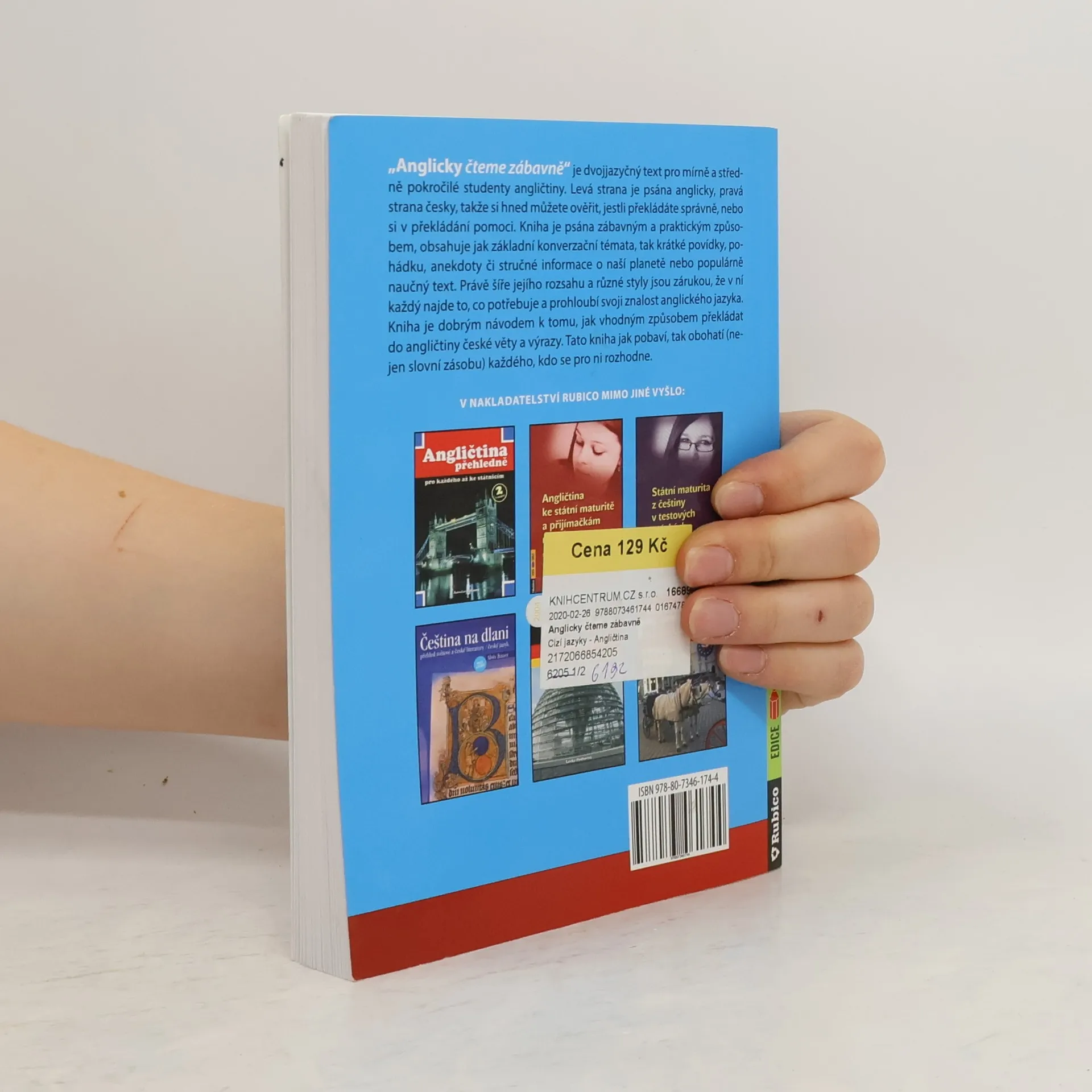 "Anglicky čteme zábavně" je dvojjazyčný text pro mírně a středně pokročilé studenty angličtiny. Levá strana je psána anglicky, pravá strana česky, takže si hned můžete ověřit, jestli překládáte správně, nebo si v překládání pomoct. Kniha je psána zábavným a praktickým způsobem, obsahuje jak základní konverzační témata, tak krátké povídky, pohádku, anekdoty či stručné informace o naší planetě nebo populárně naučný text. Právě šíře jejího rozsahu a různé styly jsou zárukou, že v ní každý najde to, co potřebuje a prohloubí svoji znalost anglického jazyka. Kniha je dobrým návodem k tomu, jak vhodným způsobem překládat do angličtiny české věty a výrazy. Tato kniha jak pobaví, tak obohatí (nejen slovní zásobu) každého, kdo se pro ni rozhodne.