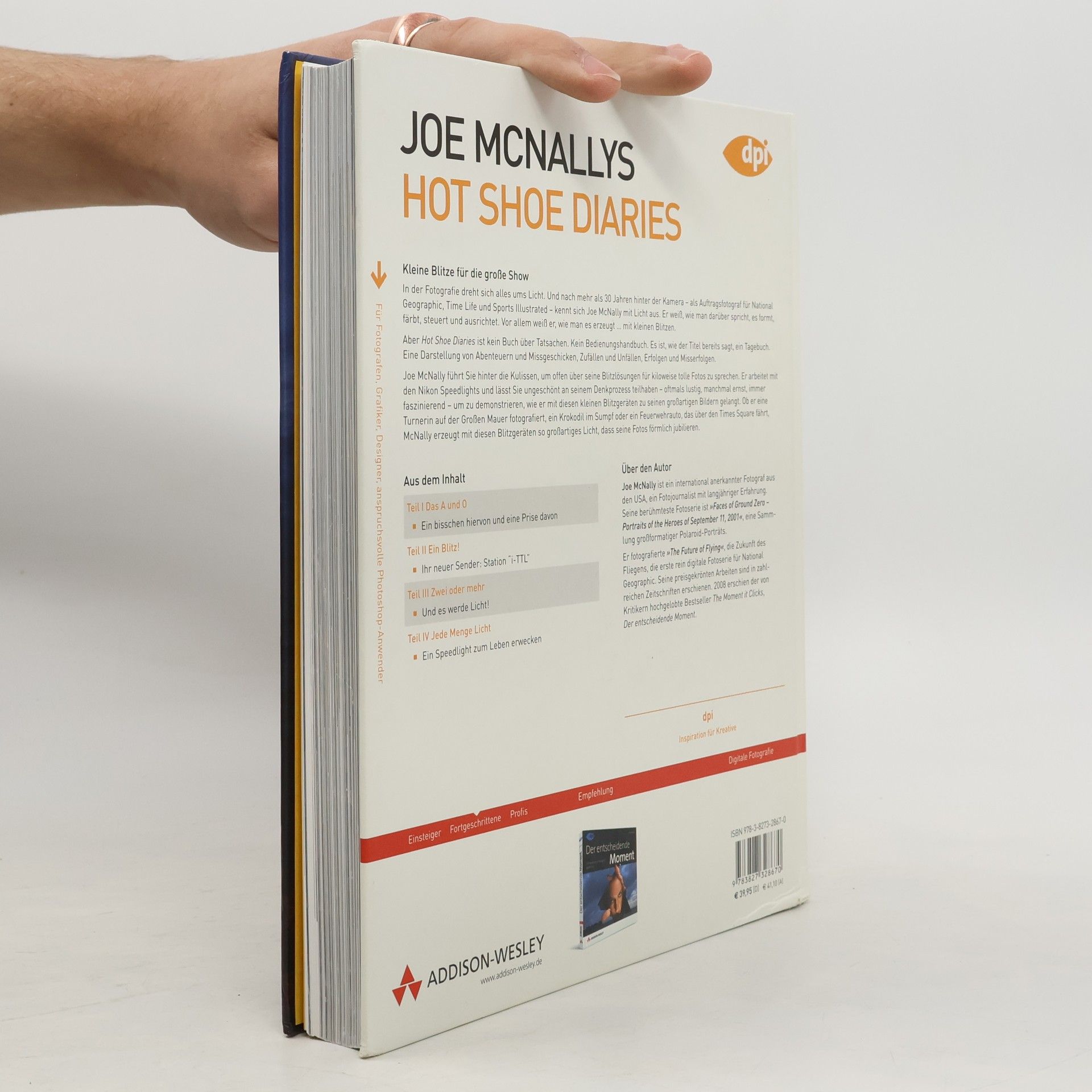 Kleine Blitze für die große Show In der Fotografie dreht sich alles ums Licht. Und nach mehr als 30 Jahren hinter der Kamera – als Auftragsfotograf für National Geographic, Time, Life und Sports Illustrated – kennt sich Joe McNally mit Licht aus. Er weiß, wie man darüber spricht, es formt, färbt, steuert und ausrichtet. Vor allem weiß er, wie man es erzeugt. mit kleinen Blitzen. Aber, Hot Shoe Diaries ist kein Buch über Tatsachen. Kein Bedienungshandbuch. Es ist, wie der Titel bereits sagt, ein Tagebuch. Eine Darstellung von Abenteuern und Missgeschicken, Zufällen und Unfällen, Erfolgen und Misserfolgen. Joe McNally führt Sie hinter die Kulissen, um offen über seine Blitzlösungen für kiloweise tolle Fotos zu sprechen. Er arbeitet mit den Nikon Speedlights und lässt Sie als Leser ungeschönt an seinem Denkprozess teilhaben – oftmals lustig, manchmal ernst, immer faszinierend – um zu demonstrieren, wie er mit diesen kleinen Blitzgeräten zu seinen großartigen Bildern gelangt. Ob er eine Turnerin auf der Großen Mauer fotografiert, ein Krokodil im Sumpf oder ein Feuerwehrauto, das über den Times Square fährt, McNally erzeugt mit diesen Blitzgeräten so großartiges Licht, das seine Fotos förmlich jubilieren.