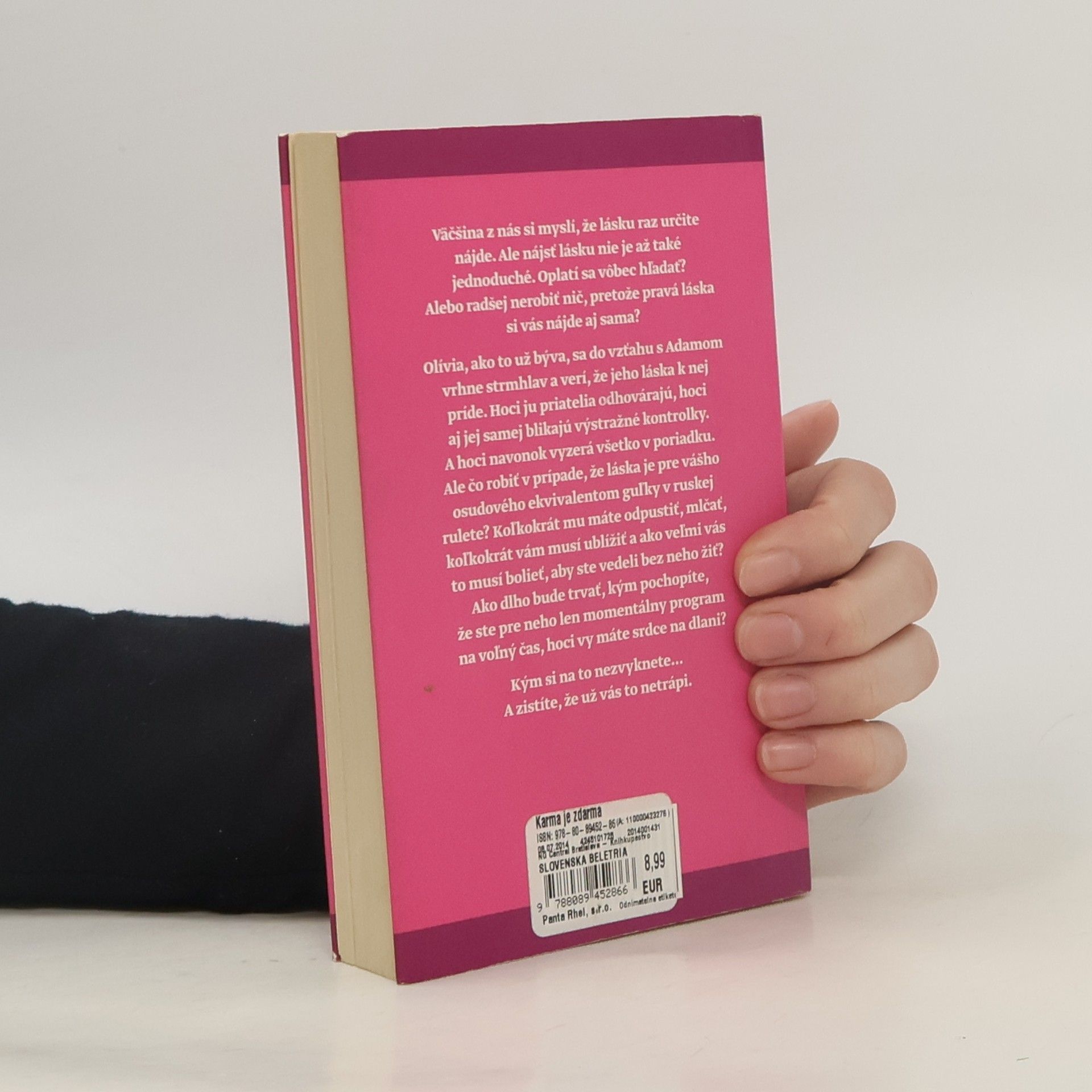 Keď stratíte jeho, nájdete seba, keď nájdete seba, nájde si vás :) Možno aj váš príbeh o vzťahu, ktorý funguje, kým nepríde láska. Väčšina z nás si myslí, že lásku raz určite nájde. Ale nájsť lásku nie je až také jednoduché. Oplatí sa vôbec hľadať? Alebo radšej nerobiť nič, pretože pravá láska si vás nájde aj sama? Olívia, ako to už býva, sa do vzťahu s Adamom vrhne strmhlav a verí, že jeho láska k nej príde. Hoci ju priatelia odhovárajú, hoci aj jej samej blikajú výstražné kontrolky. A hoci navonok vyzerá všetko v poriadku. Ale čo robiť v prípade, že láska je pre vášho osudového ekvivalentom guľky v ruskej rulete? Koľkokrát mu máte odpustiť, mlčať, koľkokrát vám musí ublížiť a ako veľmi vás to musí bolieť, aby ste vedeli bez neho žiť? Ako dlho bude trvať, kým pochopíte, že ste pre neho len momentálny program na voľný čas, hoci vy máte srdce na dlani? Kým si na to nezvyknete... A zistíte, že už vás to netrápi.