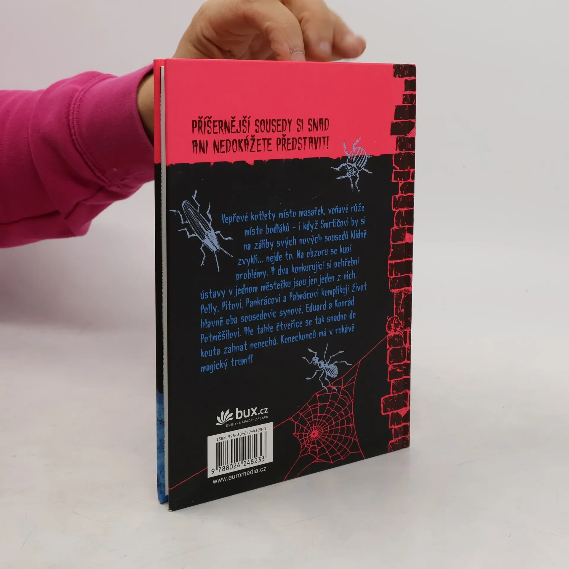 Nic horšího se snad ani stát nemohlo! Místo much v salátu vepřové kotlety a místo pichlavých bodláků voňavé růže… Smrtičovi sice dělají všechno pro to, aby si své nové sousedy oblíbili, ale zkrátka a dobře to nejde! Zejména jejich dva vypečení synkové lezou Polly, Pitovi, Pankrácovi a Palmácovi pěkně krkem. Ještě že mají v rukávu účinný magický trumf. -- zdroj: www.legie.info --