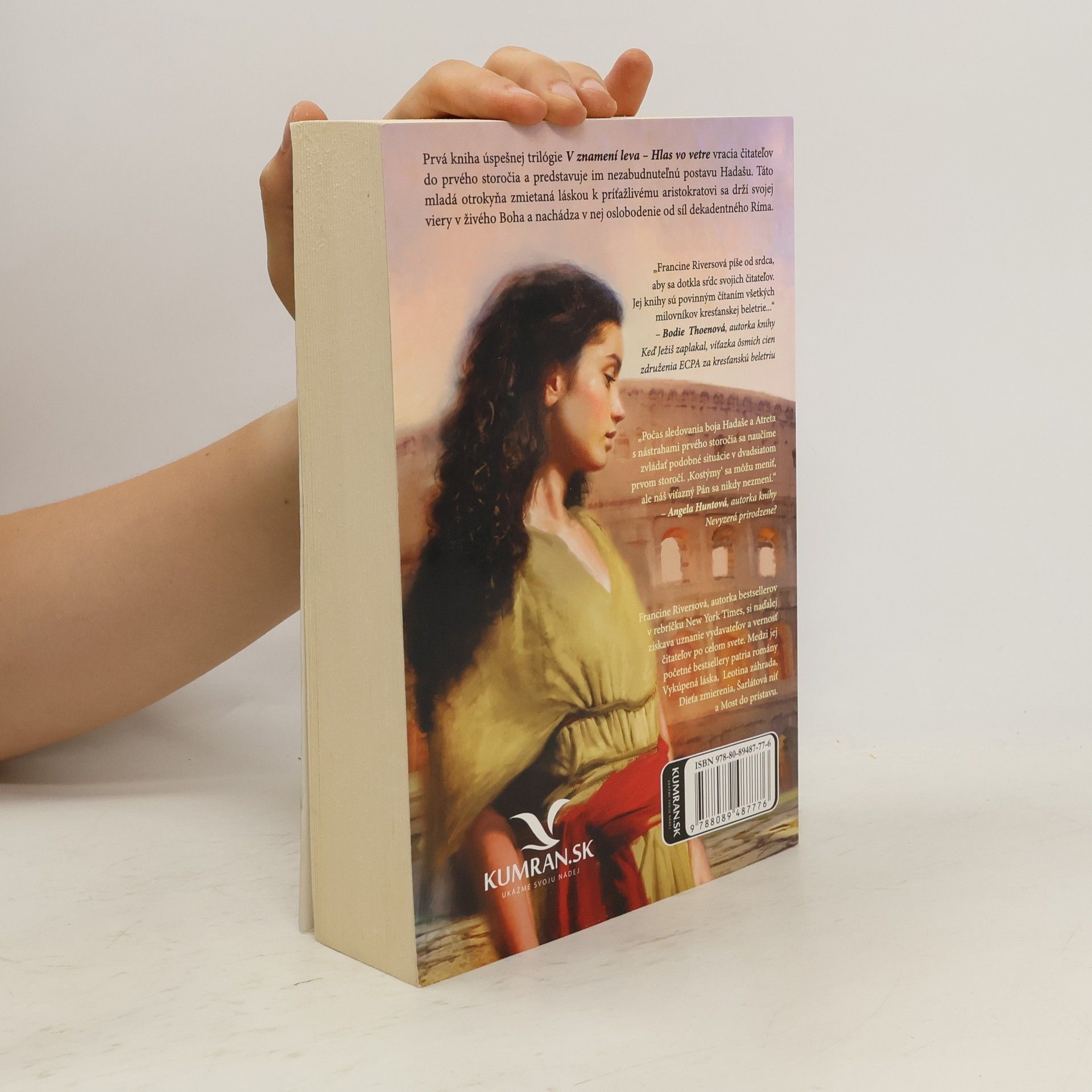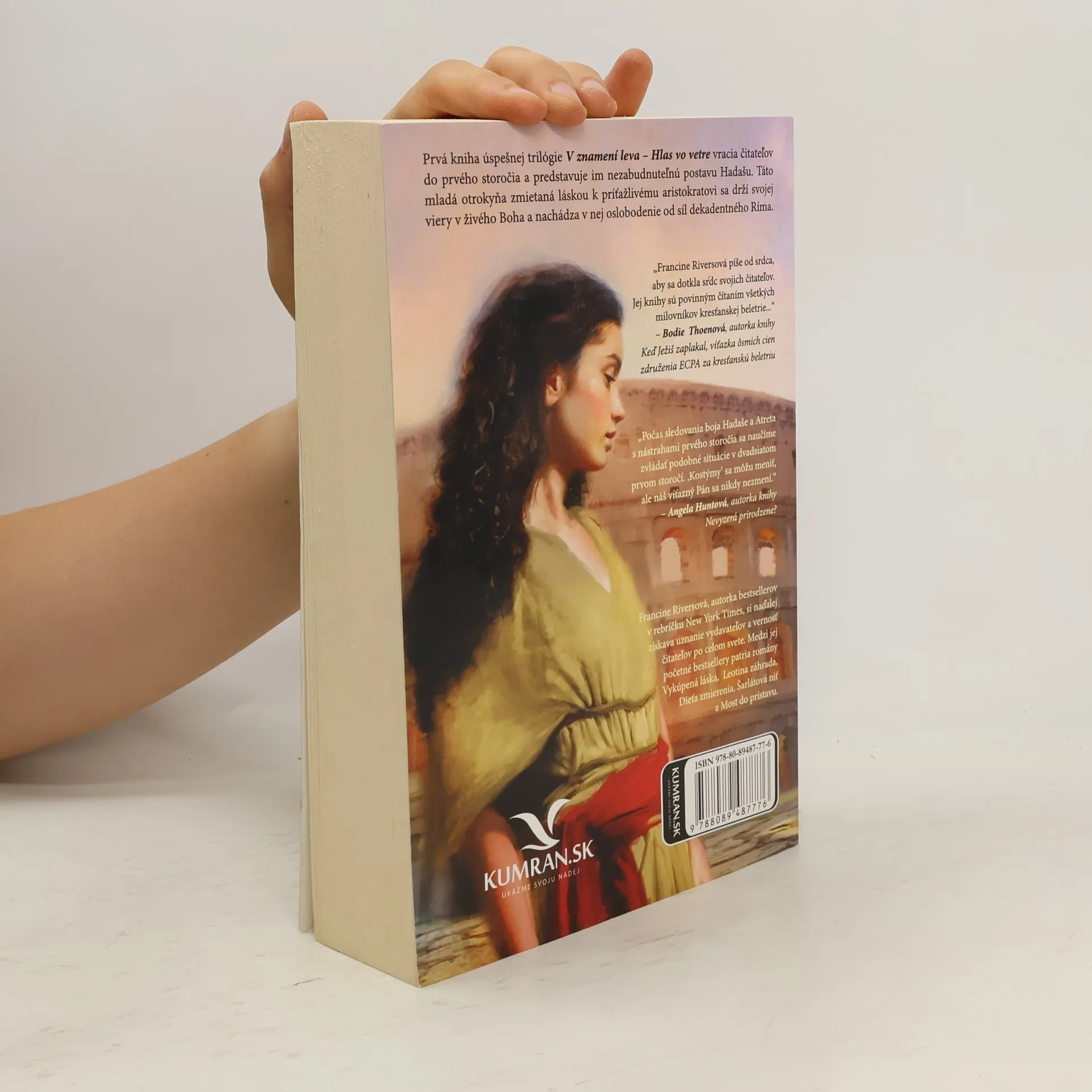 Prvá kniha úspešnej trilógie V znamení leva − Hlas vo vetre vracia čitateľov do prvého storočia a predstavuje im nezabudnuteľnú postavu − Hadašu. Táto mladá otrokyňa zmietaná láskou k príťažlivému aristokratovi sa drží svojej viery v živého Boha a nachádza v nej oslobodenie od síl dekadentného Ríma.