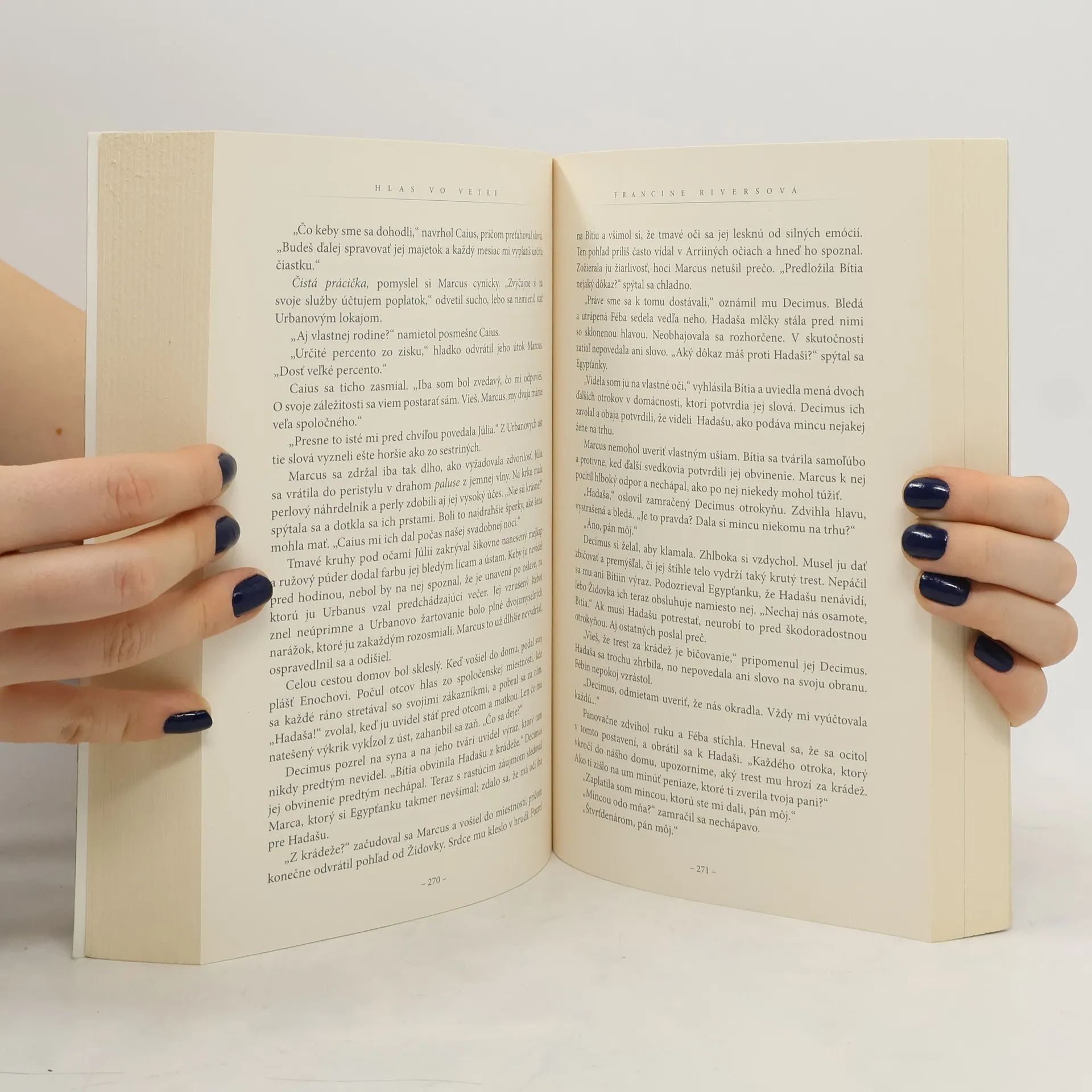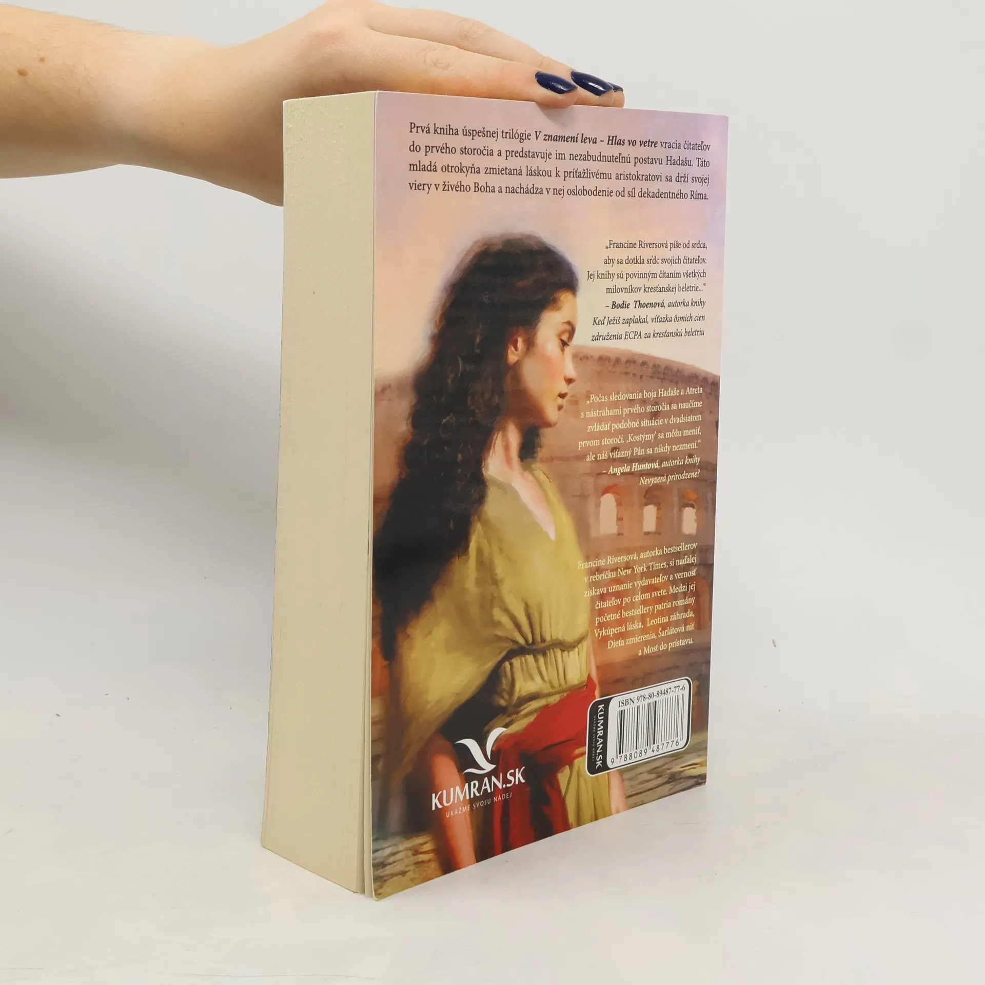 Prvá kniha úspešnej trilógie V znamení leva − Hlas vo vetre vracia čitateľov do prvého storočia a predstavuje im nezabudnuteľnú postavu − Hadašu. Táto mladá otrokyňa zmietaná láskou k príťažlivému aristokratovi sa drží svojej viery v živého Boha a nachádza v nej oslobodenie od síl dekadentného Ríma.