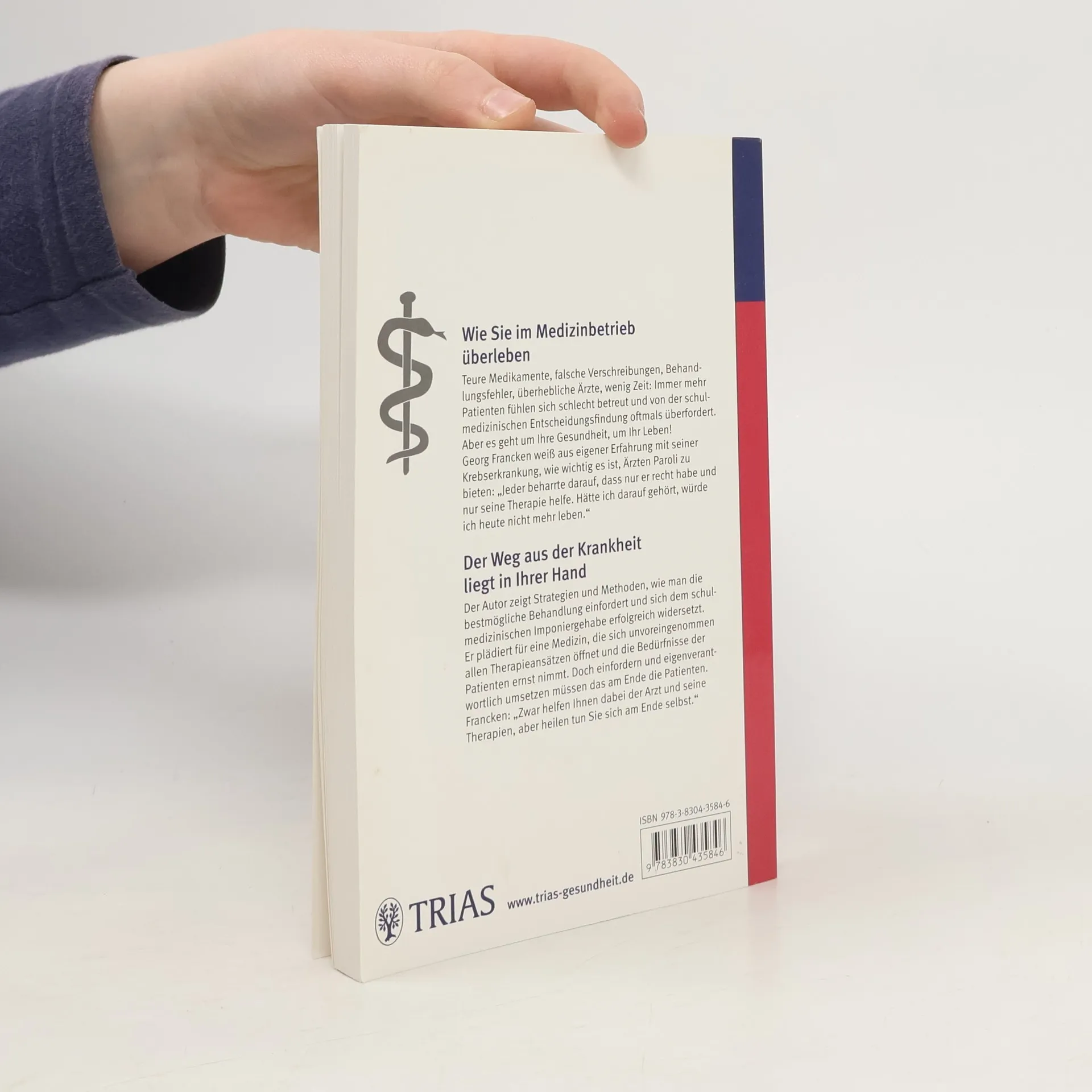 Teure Medikamente, falsche Verschreibungen, überhebliche Ärzte und wenig Zeit - immer mehr Patienten fühlen sich schlecht betreut oder überfordert. Auf Grund seiner eigenen Krebserkrankung erlebte Georg Francken bereits in jungen Jahren hautnah, was es bedeutet, sich als mündiger Patient im modernen Medizinbetrieb behaupten zu müssen. Seit diesem Zeitpunkt gehören für ihn die Beurteilung von Chancen und Risiken schulmedizinischer Diagnostik und Therapie ebenso zu den spannenden Themen wie eine ergebnisoffene Auseinandersetzung mit den Möglichkeiten alternativer Heilmethoden und die Bereitschaft zur Veränderung des eigenen Lebensstils.