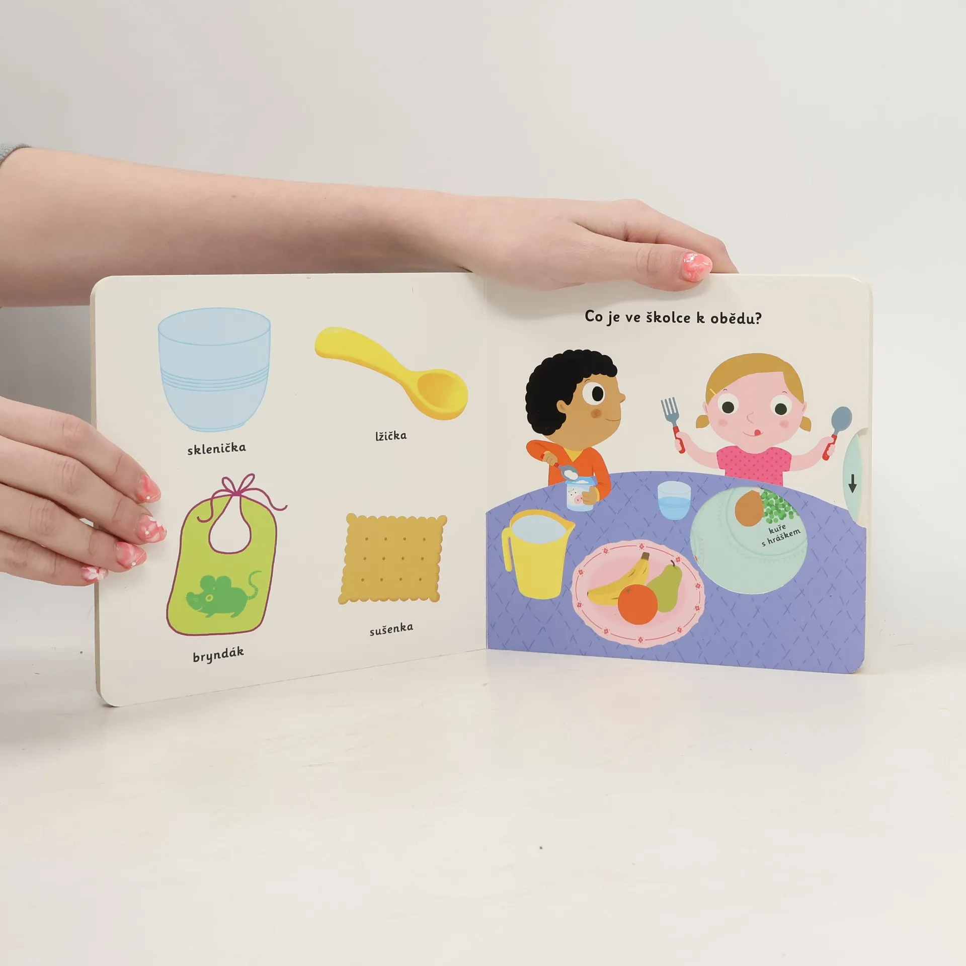 Chodíš do školky? A s kým si tam hraješ? Nebylo by fajn mít paní učitelku a kamarády ze školky i doma v knížce? Jaké jsou ve školce tvé nejoblíbenější hračky a co tam míváte k obědu? Chodíš domů "po o", nebo "po spa"? Vyjmenuj vše, co máš na školce nejraději! Namaluj pěkný obrázek pastelkami. V tomto leporelu s pevnými stránkami a všelijakými pohyblivými prvky si děti procvičí jemnou motoriku. Prostřednictvím pestrých ilustrací se seznámí s pravidly chování ve školce. Ať už do školky chodí, nebo se tam teprve chystají, tato knížka je bude bavit!