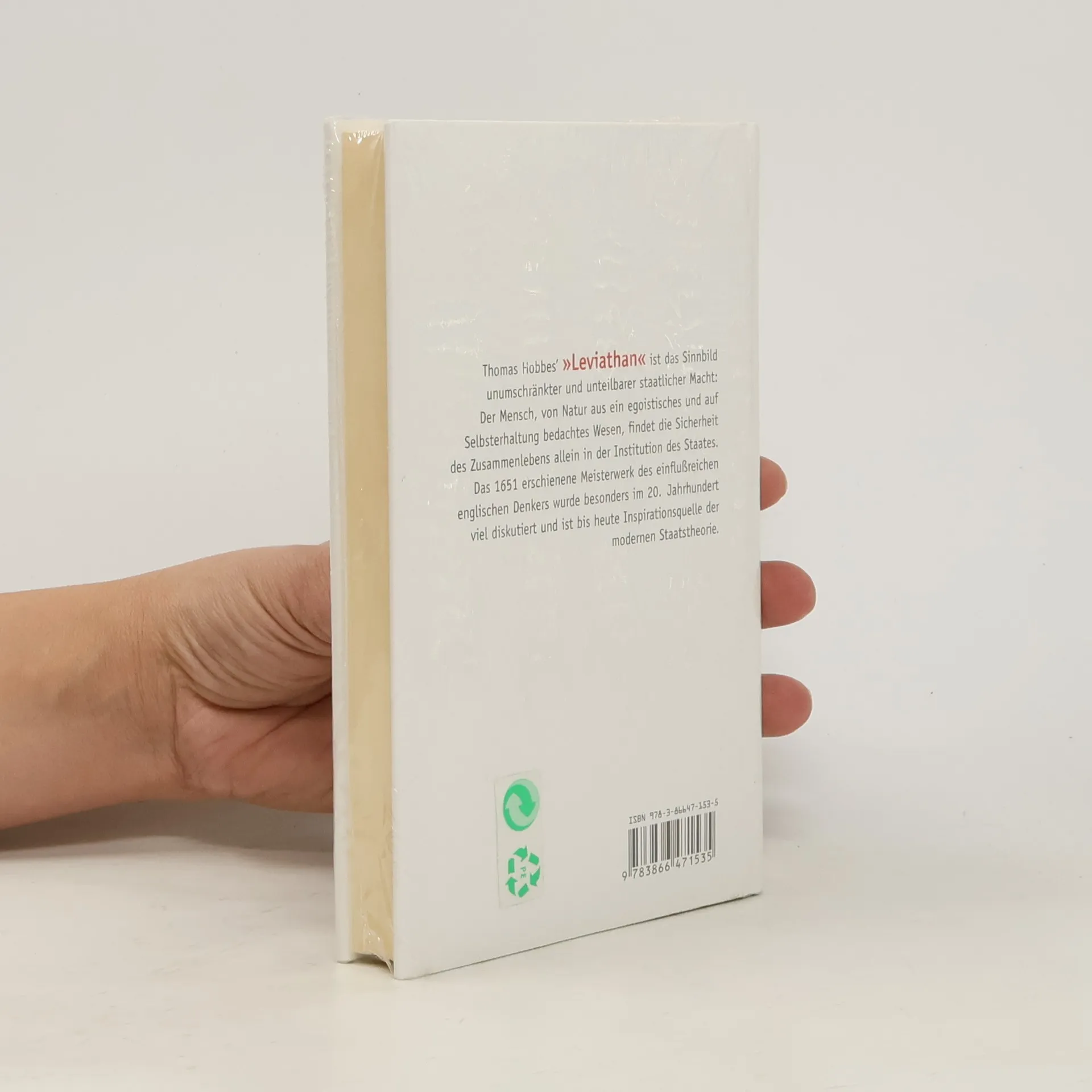 Thomas Hobbes’ 'Leviathan' ist das Sinnbild unumschränkter und unteilbarer staatlicher Macht: Der Mensch, von Natur aus ein egoistisches und auf Selbsterhaltung bedachtes Wesen, findet die Sicherheit des Zusammenlebens allein in der Institution des Staates. Das 1651 erschienene Meisterwerk des einflußreichen englischen Denkers wurde besonders im 20. Jahrhundert viel diskutiert und ist bis heute Inspirationsquelle der modernen Staatstheorie.