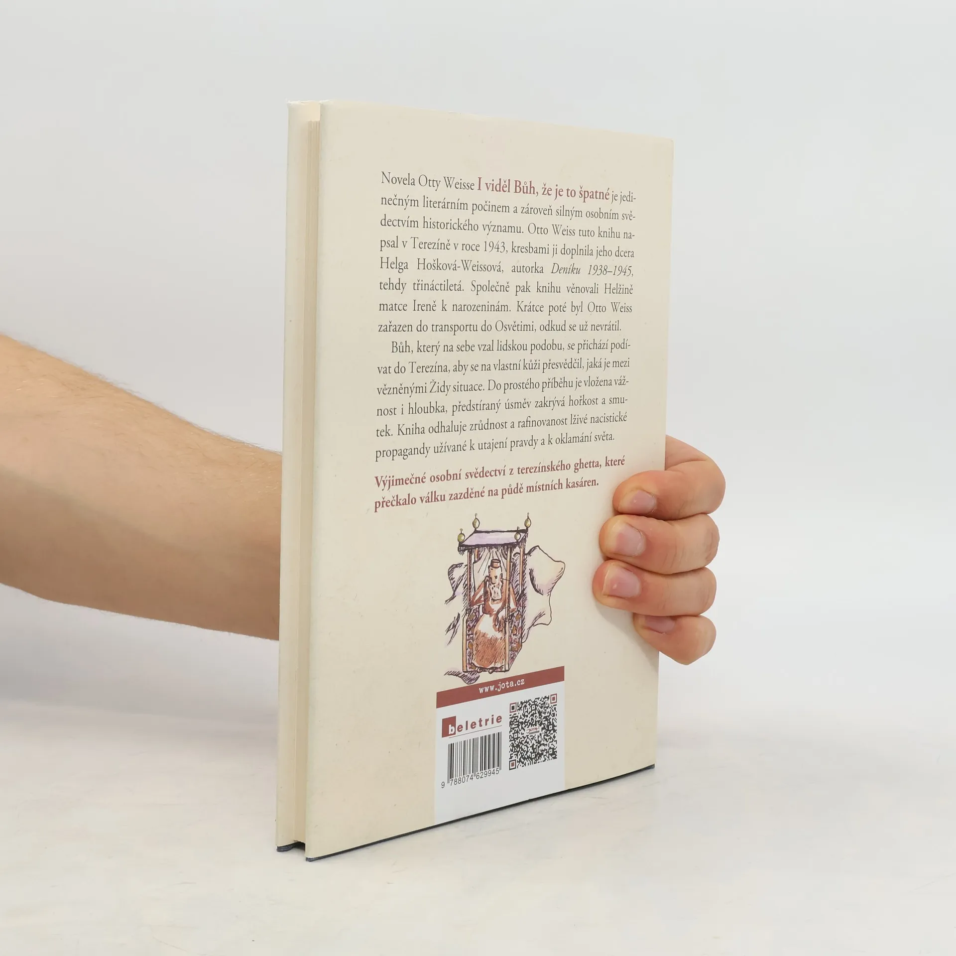Výjimečné osobní svědectví z terezínského ghetta, které přečkalo válku zazděné na půdě místních kasáren. Novela Otty Weisse I viděl Bůh, že je to špatné je jedinečným literárním počinem a zároveň silným osobním svědectvím historického významu. Otto Weiss tuto knihu napsal v Terezíně v roce 1943, kresbami ji doplnila jeho dcera Helga, autorka Deníku 1938–1945, tehdy 13letá. Společně pak knihu věnovali Helžině matce Ireně k narozeninám. Krátce poté byl Otto Weiss zařazen do transportu do Osvětimi, odkud se už nevrátil. Bůh, který na sebe vzal lidskou podobu, se přichází podívat do Terezína, aby se na vlastní kůži přesvědčil, jaká je mezi vězněnými Židy situace. Do prostého příběhu je vložena vážnost i hloubka, předstíraný úsměv zakrývá hořkost a smutek. Kniha odhaluje zrůdnost a rafinovanost lživé nacistické propagandy užívané k utajení pravdy a k oklamání světa.