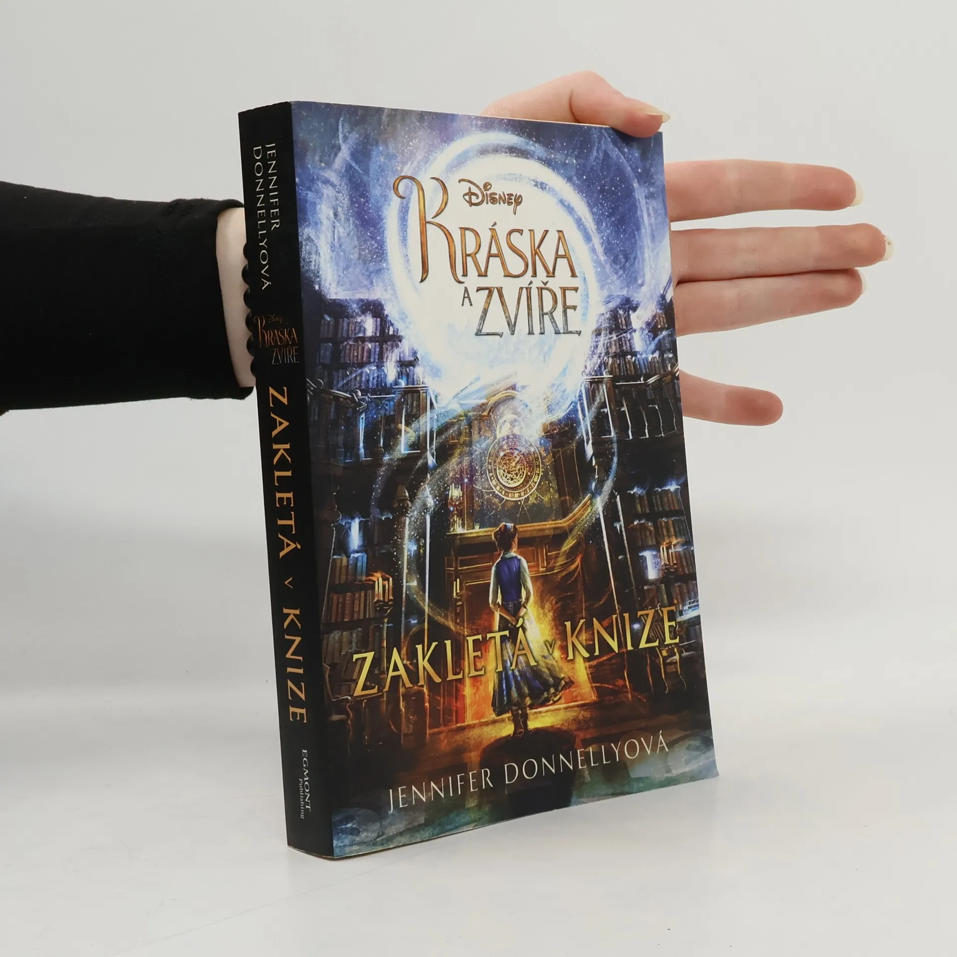 Zakleta v knize, originální příspěvek k novému hranému filmu studia Walt Disney Kráska a zvíře, vypráví příběh osamělé milovnice knih Belle. Ta najde v knihovně svého věznitele zvířete očarovanou knihu, která ji zanese do zcela nového světa. Zde se Belle spřátelí s tajemnou hraběnkou, která jí nabídne život, o jakém vždy snila. Ale nový svět není zdaleka takový, jak se na první pohled zdá, a čím více v něm Belle tráví času, tím těžší je ho opustit. Napínavé příběhy se nás zmocní a už nepustí, a jakmile je Belle zakleta v této knize, možná už z ní nikdy nenajde cestu ven.